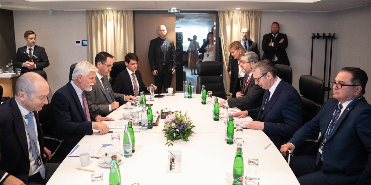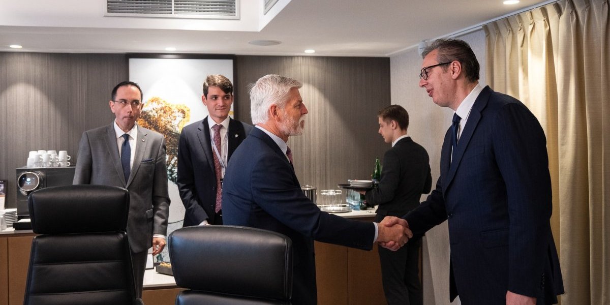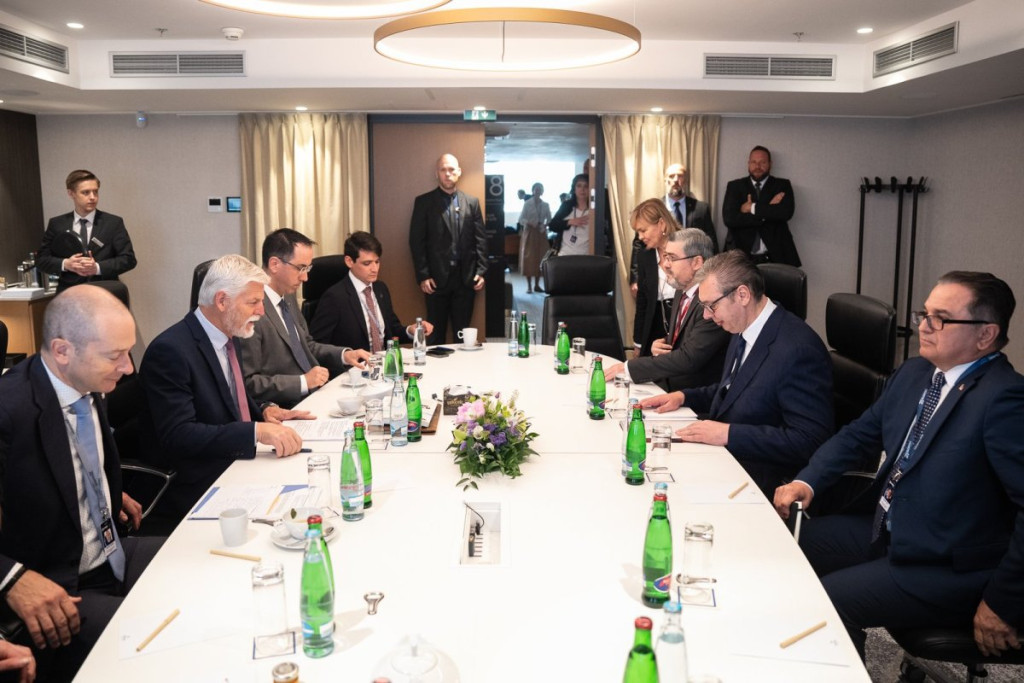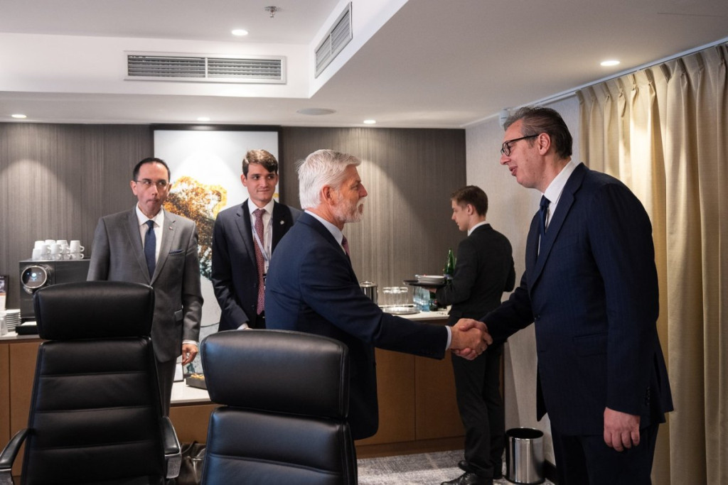 Predsednik Srbije Aleksandar Vučić sastao se danas sa predsednikom Češke Petrom Pavelomu Pragu, u okviru globalnog bezbednosnog foruma "GLOBSEC".