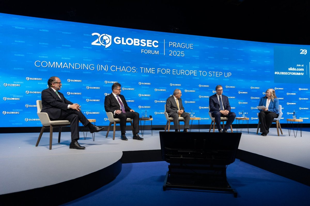 Predsednik Srbije Aleksandar Vučić učestvuje danas na Globalnom bezbednosnom forumu "GLOBSEC 2025" u Pragu , koji se etablirao kao jedna od najuticajnijih platformi u Evropi za oblikovanje globalne bezbednosti i stabilnosti, i koji ove godine obeležava jubilarno 20. izdanje.