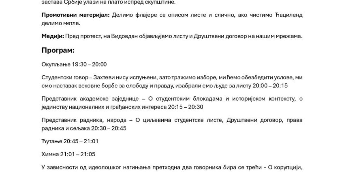 U dokumentu, koji možete videti u nastavku teksta, se jasno vidi da je blokaderima potrebno 2.000 metli, 1.000 šlemova, kao i vatromet, što dovodi do logičnog zaključka da spremaju ozbiljno nasilje i krvoproliće na Vidovdan, jer šta će im inače sve to?