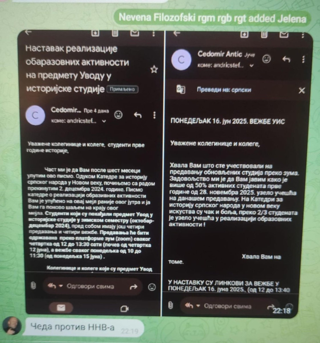 Profesor Čedomir Antić istakao je da se još od 15. marta "dinsta" univerzitet, a ne predsednik Srbije