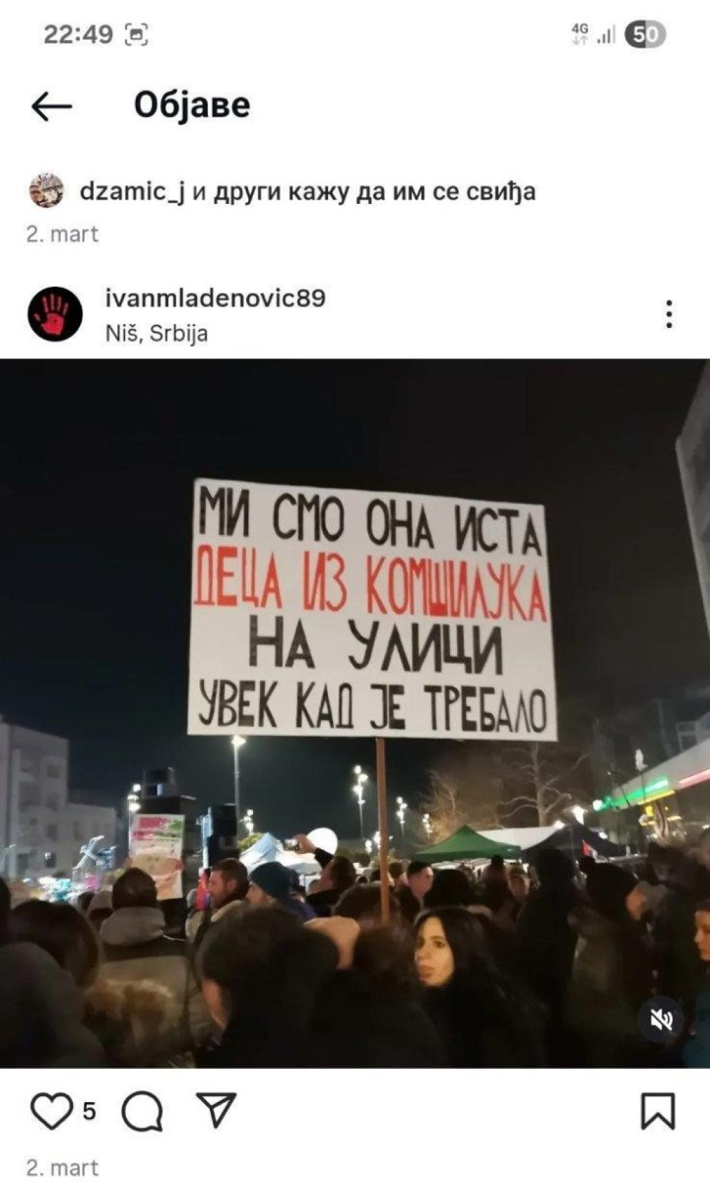 Mladenović je inače, sudeći po objavama na društvenim mrežama okoreli blokader. On je objavljivao slike sa protesta, ali i sa Nemanjom Šarovićem, Dražom Petrovićem i Zlatkom Kokanovićem, ljudima koji već mesecima pozivaju na krvorploće.