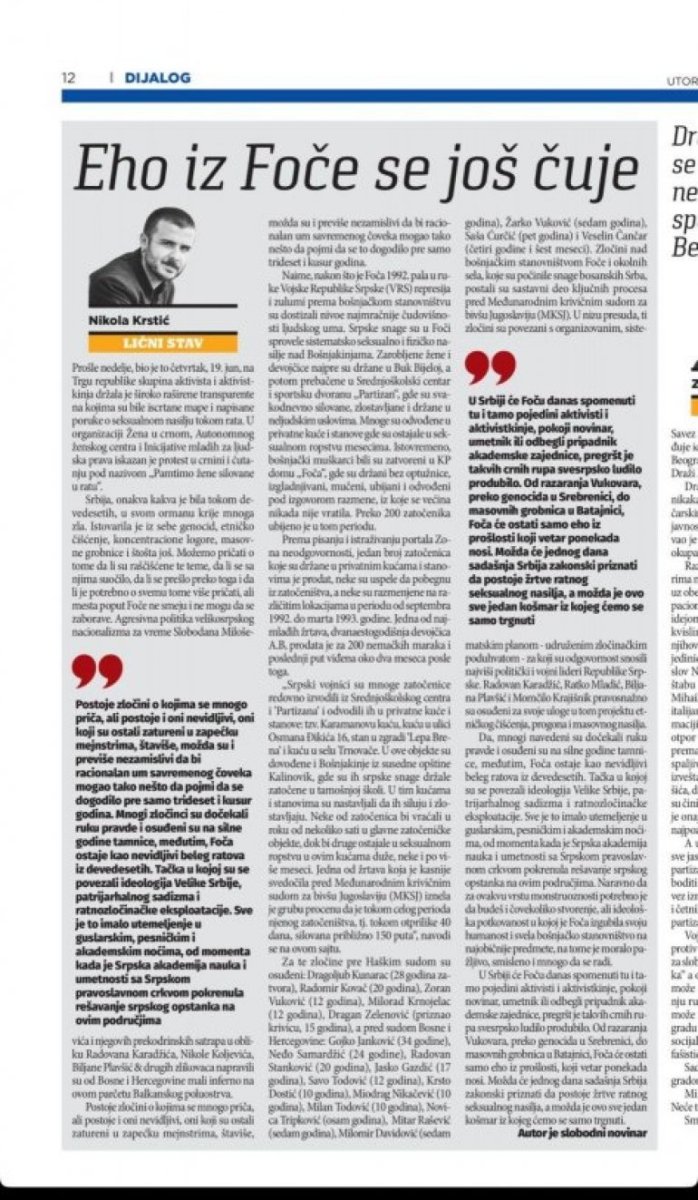 Dok će ceo srpski narod obeležiti Vidovdan, jedan od najvećih i najsvetijih praznika, grupa bloakdera i samozvanih "intelektualaca" okupljena oko tzv. festival "Krokodil" sramno i bez trunke poštovanja koristi ovaj dan da lansira novu antisrpsku kampanju pod naslovom "Srbi su genocidni"!