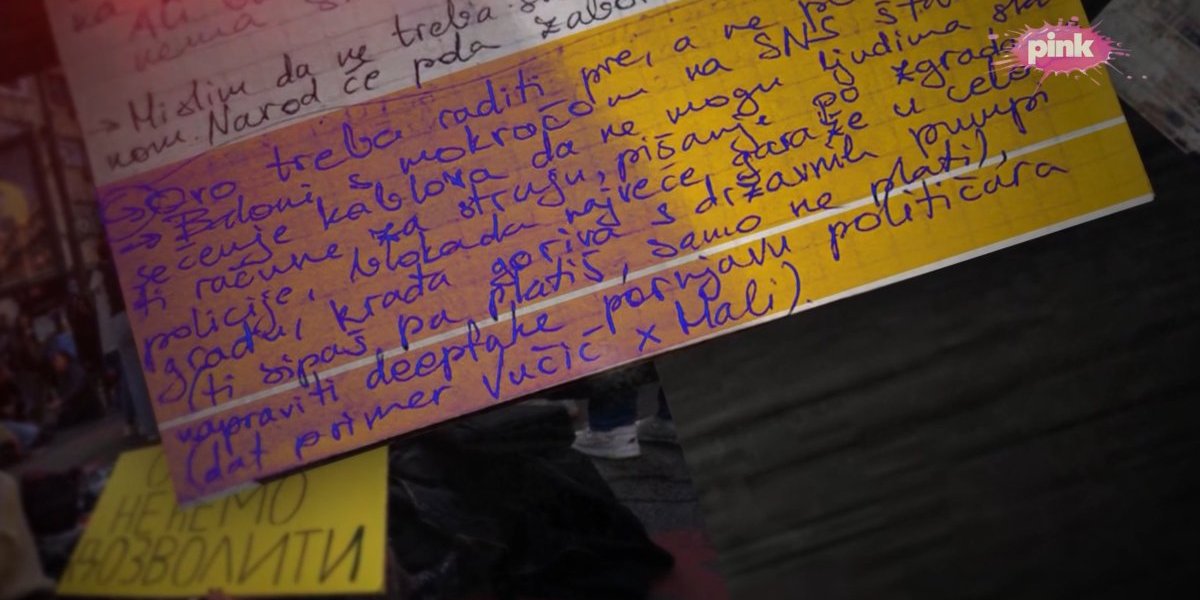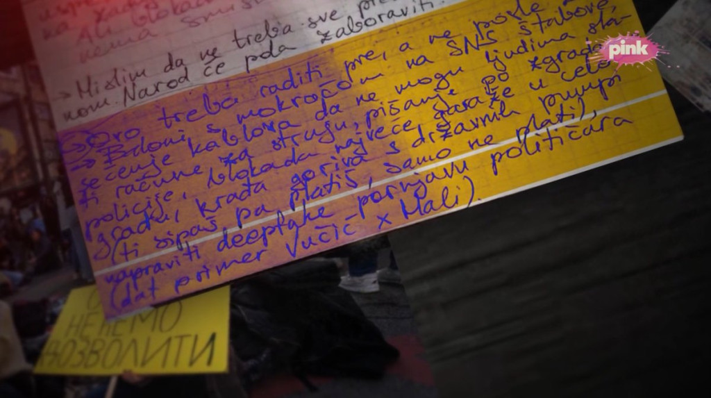 Cilj je da ne bude samo haos u Beogradu, već da haos bude svuda. Mišljenje je da je deset do petnaest hiljada ljudi dovoljno da se sruši Ćacilend, jer to se radi sedmog dana. Najzad u svojim beleškama blokaderi iznose i više nego konkretne predloge. Citiramo. Sečenje kabla da ne mogu ljudima deliti račune za struju, piš**** po zgradama policije, blokade najveće garaže u celom gradu, krađa goriva sa državnih pumpi, ti sipaš pa platiš, samo ne plati. Ipak, možda, najbolesniji deo njihovog plana predviđa i snimanje lažnih filmova za odrasle. Citiramo. Napraviti deepfake por***** političara. Dat primer Vučić i Mali.