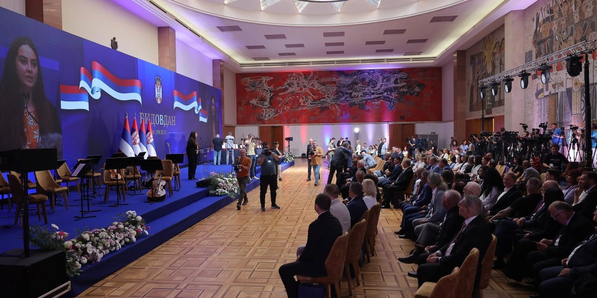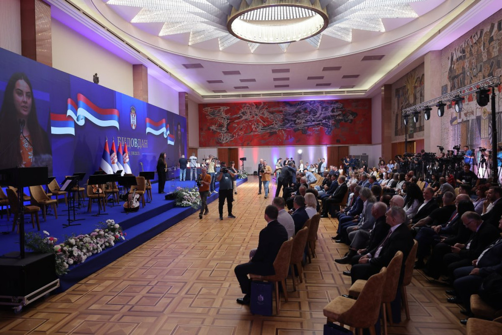 Svečanost u Palati Srbija počela je intoniranjem himne Bože pravde u izvođenju umetničkog ansambla Ministarstva odbrane.