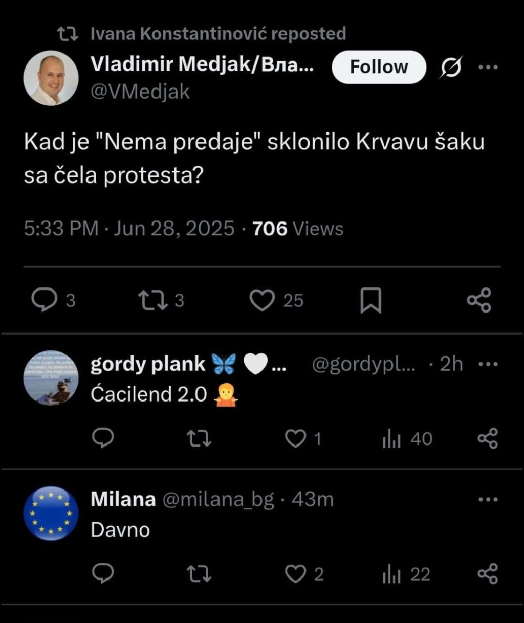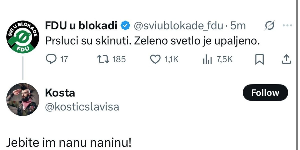 - Ajmo završavaj pivo, počinje protest! Dosta kafenisanja, vračarci - napisao je Đorđe Miketić na Iksu.