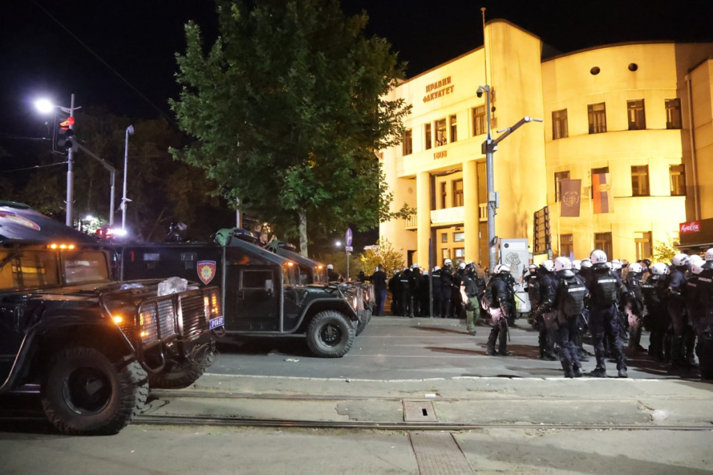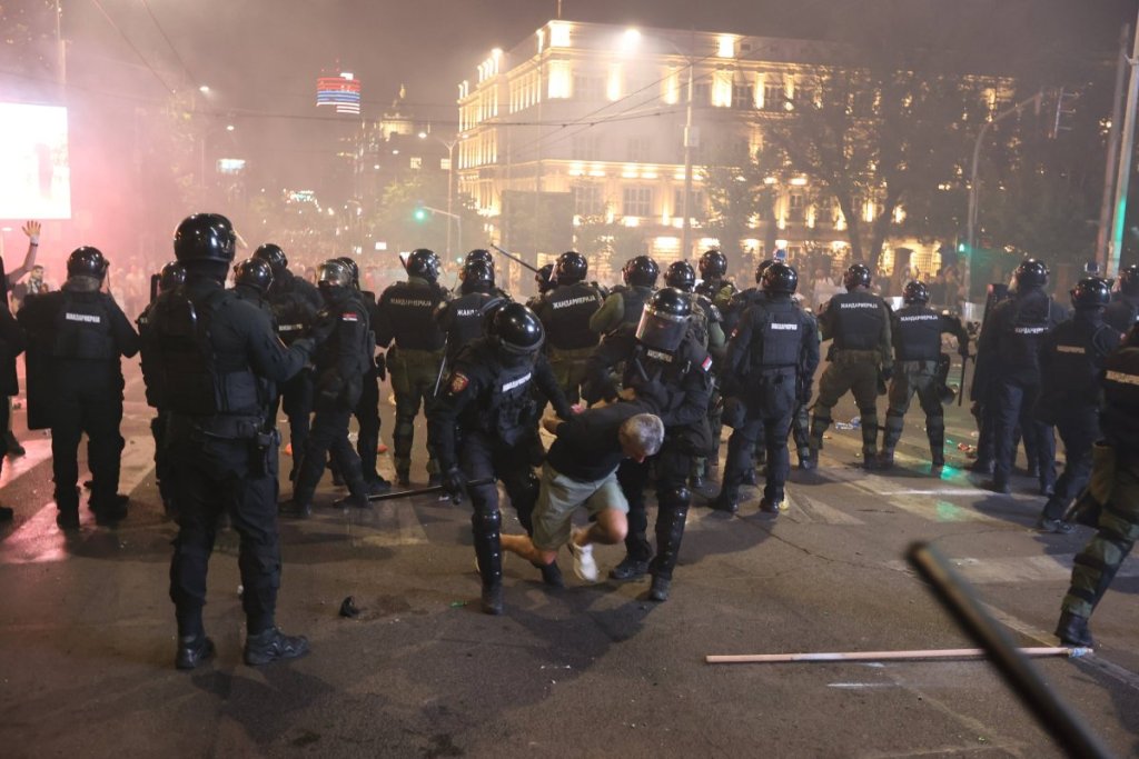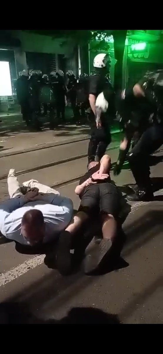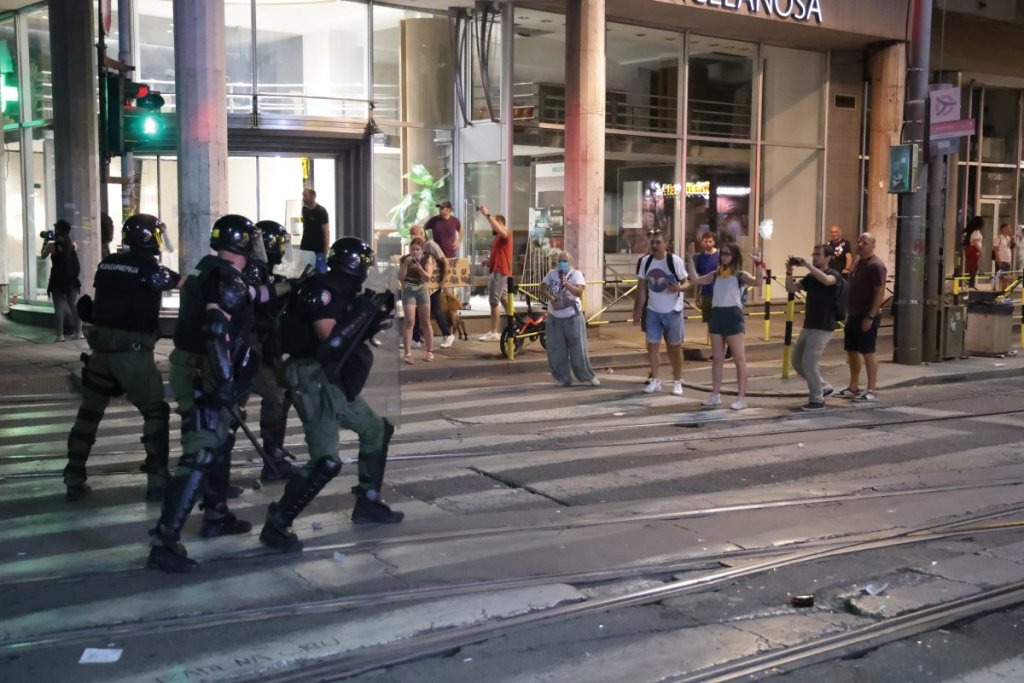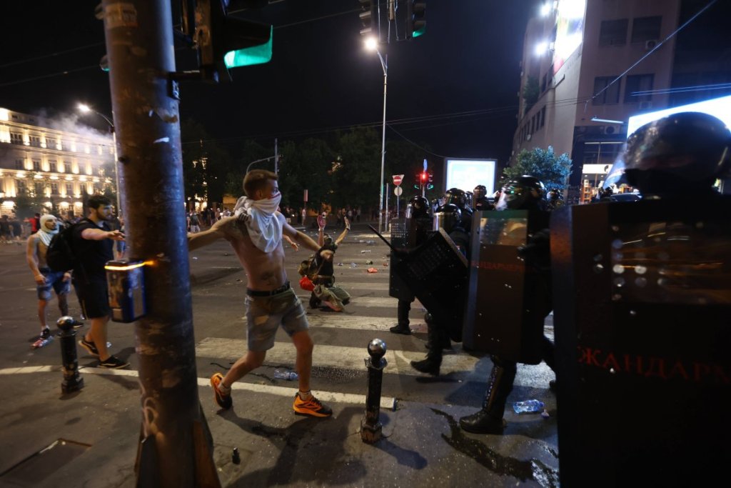 Lisice na ruke večeras su stavljene i Goranu V. (39) zbog sumnje da je policiju gađao kamenjem, zatim Aleksandru M. (25), zbog toga što je pripadnike policije gađao drvenim motkama, Anastasiju K. (22), koji se popeo na krov trafike i policajce gađao flašama i prskao vodom i sokom, zatim Jovanu S. (21), zbog sumnje da šutirao pripadnike Žandarmerije, a jednog od njih uhvatio za nogu i vukao.