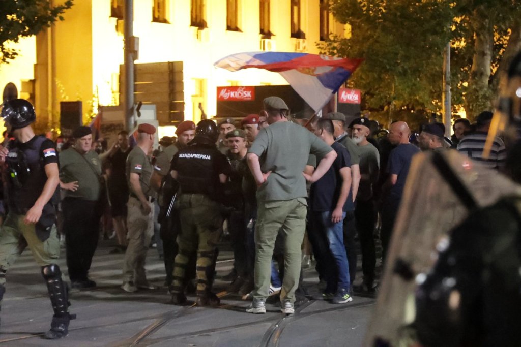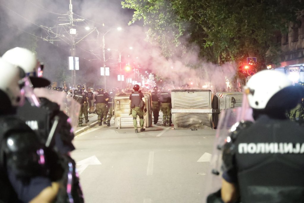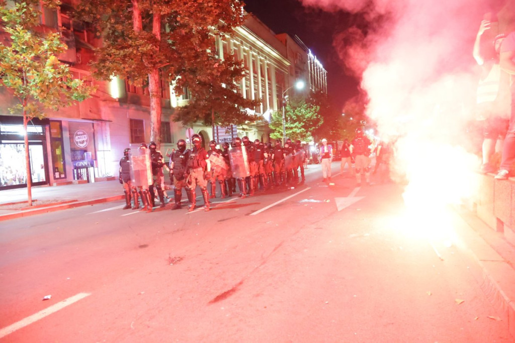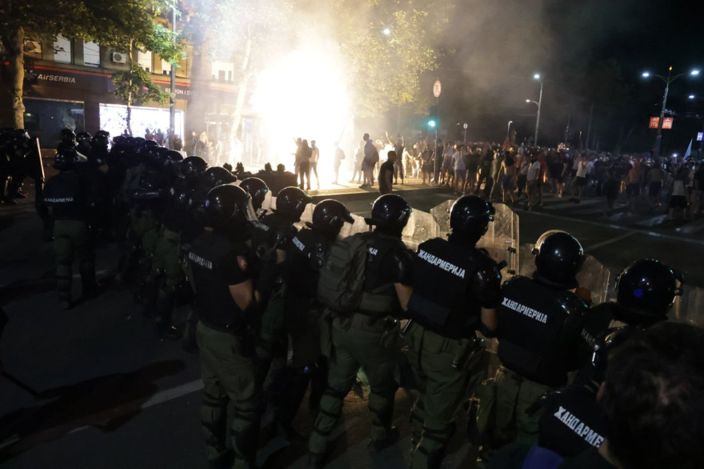 Lisice na ruke večeras su stavljene i Goranu V. (39) zbog sumnje da je policiju gađao kamenjem, zatim Aleksandru M. (25), zbog toga što je pripadnike policije gađao drvenim motkama, Anastasiju K. (22), koji se popeo na krov trafike i policajce gađao flašama i prskao vodom i sokom, zatim Jovanu S. (21), zbog sumnje da šutirao pripadnike Žandarmerije, a jednog od njih uhvatio za nogu i vukao.