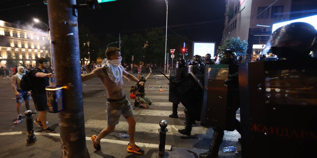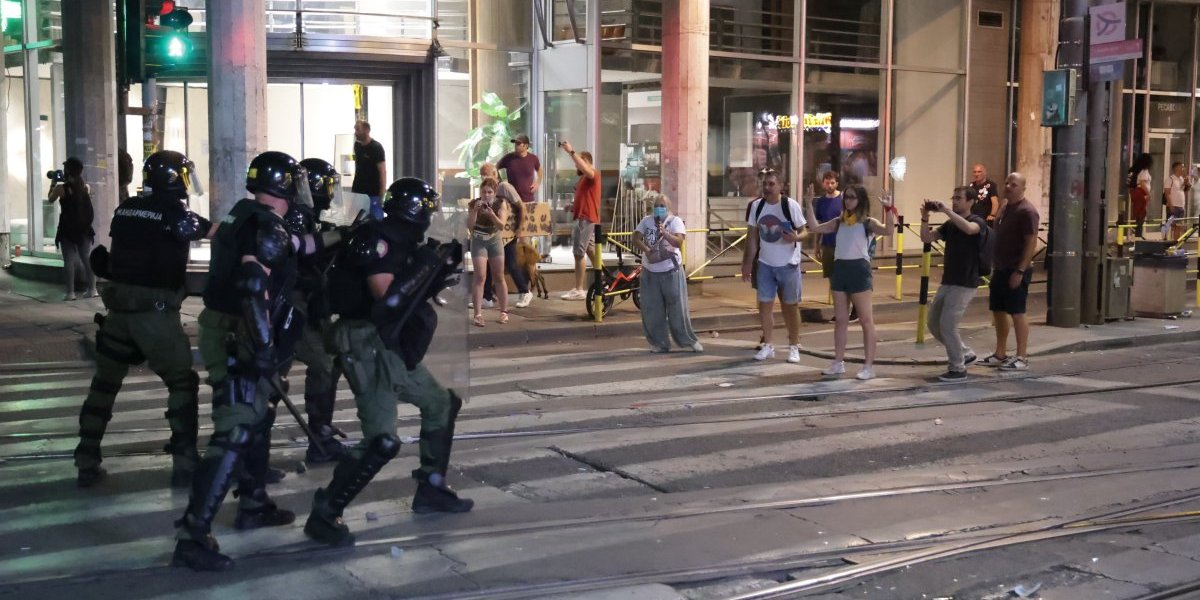 Nakon što se grupa blokadera posle neprijavljenog protesta u Beogradu protiv države u petak skupila u Ulici Kneza Miloša i u Krunskoj, sukob se nastavio na Trgu Nikole Pašića, a potom eskalirao u samom centru Beograda.