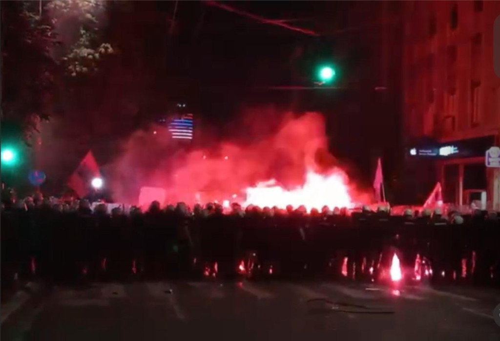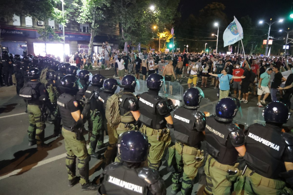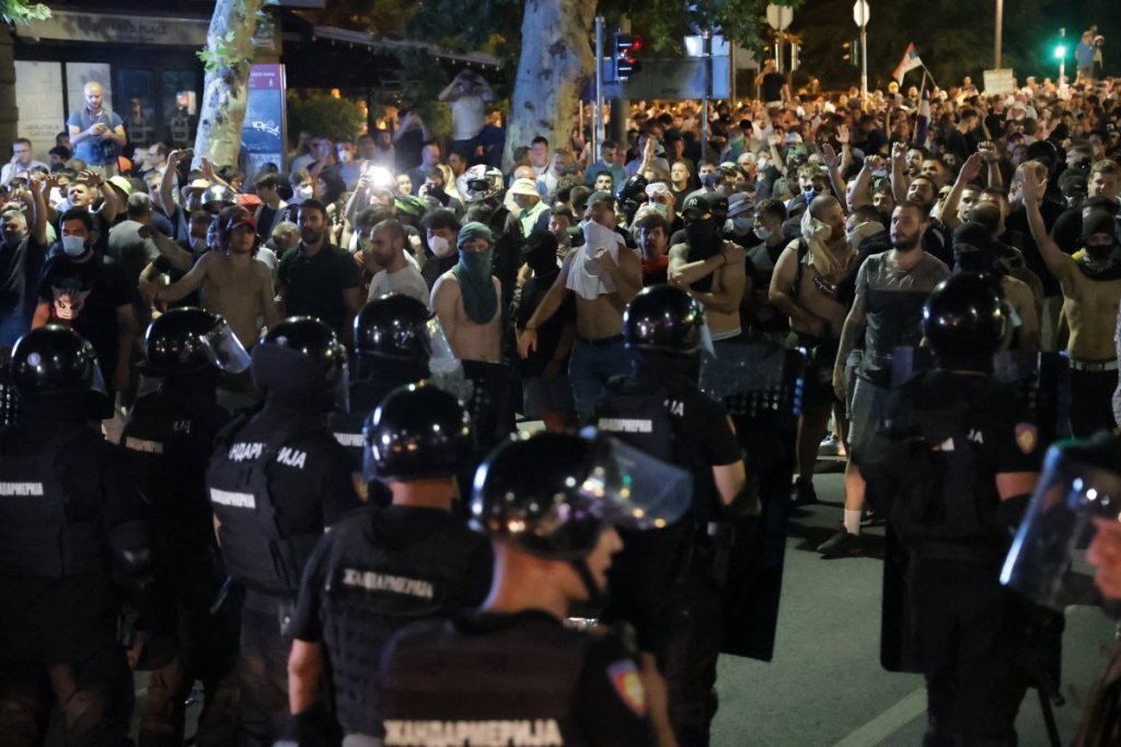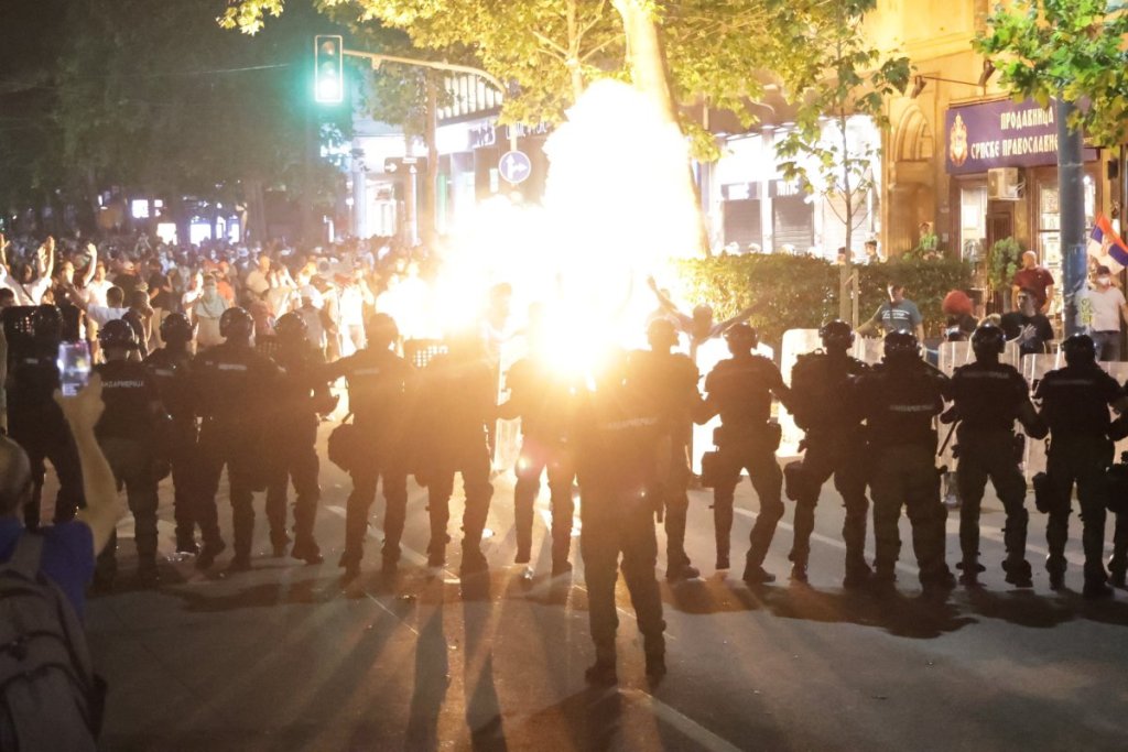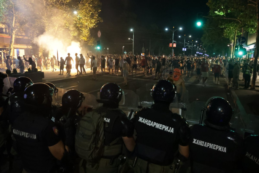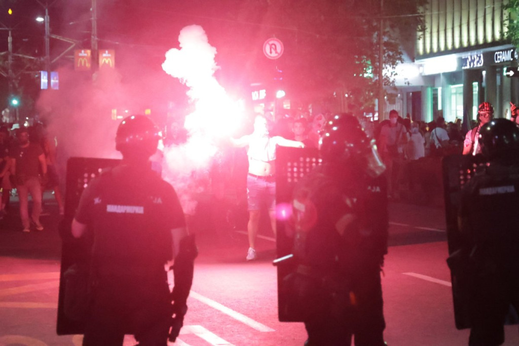 - Narušavanje reda i mira je počelo posle 21 sat. Tada je grupa lica posle povlačenja redara napala policijske službenike u Ulici kneza Miloša. Posle više upozorenja da prestanu, došlo je do povređivanja policajaca iz kordona, i policija je bila prinuđena da odbije napad i uspostavi red i mir. Tokom uspostavljanja reda i mira povređeno je ukupno 48 policajaca! Jedan policajac je zadobio teške povrede, dobio je povrede glave i prelom jagodične kosti, najverovatnije od kamena koji je bačen - kazao je Dačić.