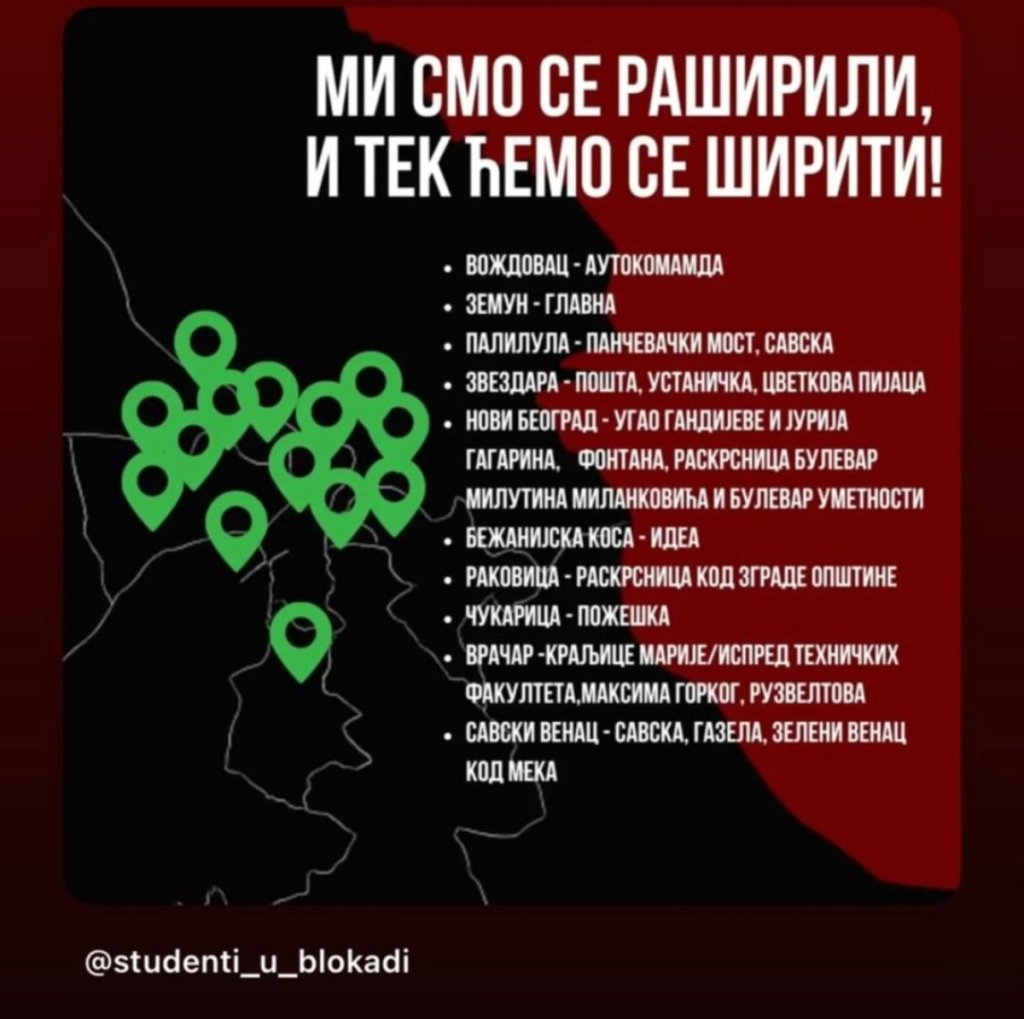 Kontejner revolucionari prete da će da se prošire, a na Instagram stranici "Studenti u blokadi", objavili su spisak mesta u kojima nekolicina remeti mir većine.