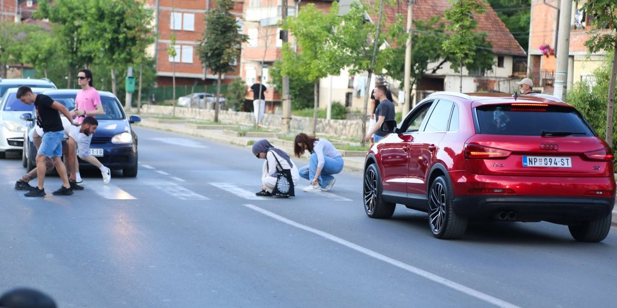 Blokaderi su se okomili na automobil čoveka koji se našao ispred njih i počeli da ga šutiraju.