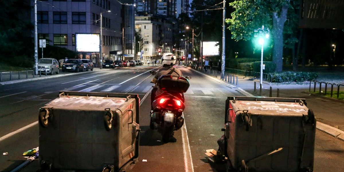 Blokaderi su prosipali beton po Bulevaru oslobođenja u Novom Sadu.