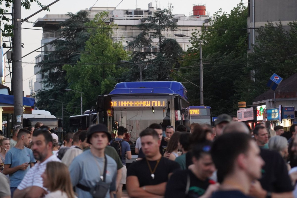 Večeras u 19 časova grupica građana u Užicu protestvovala je ispred zgrade MUP-a, a potom su se razdvojili u dve grupe, od kojih bi jeedna blokirala kružni tok kod zgrade Narodnog muzeja, a druga grupa raskrsnicu kod Prve osnovne škole. Na ovaj način je blokirana glavna ulica, koja je od 18 časova pešačka zona, ali i obilzne ulice, koje su postale glavne saobraćajnice kroz centar grada posle 18 časova.