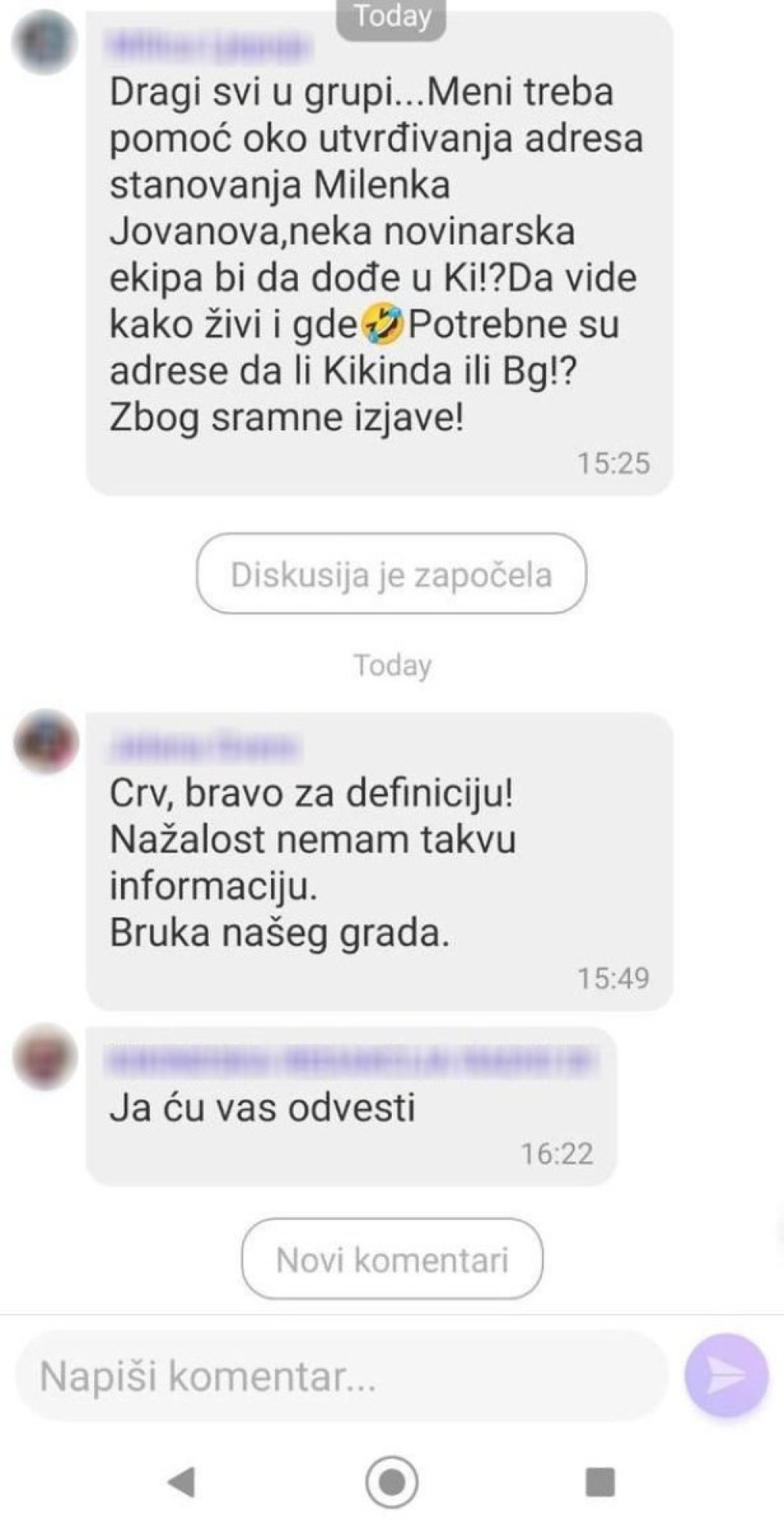 Redakcija Informer.rs zadržava pravo izbora, brisanja komentara, ili modifikacije komentara koji će biti objavljeni. Prema Zakonu o informisanju zabranjeno je objavljivanje svih sadržaja koji podstiču diskriminaciju, mržnju ili nasilje protiv lica ili grupe lica zbog njihovog pripadanja ili nepripadanja određenoj rasi, veri, naciji, etničkoj grupi, polu ili zbog njihovog seksualnog opredeljenja.
