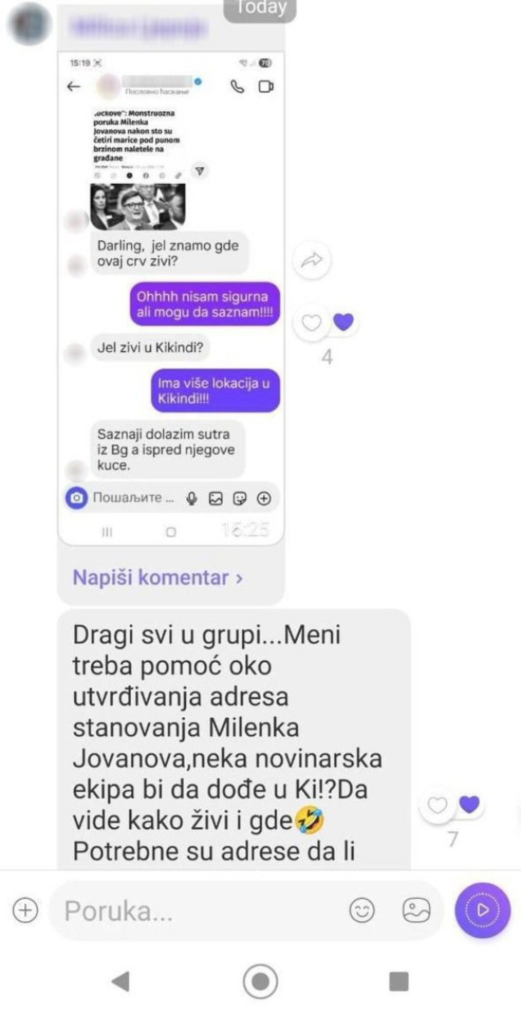 Naime, horda blokadera planira da utvrdi gde Jovanov stanuje i krene ka njegovoj kući kako bi ga linčovala.