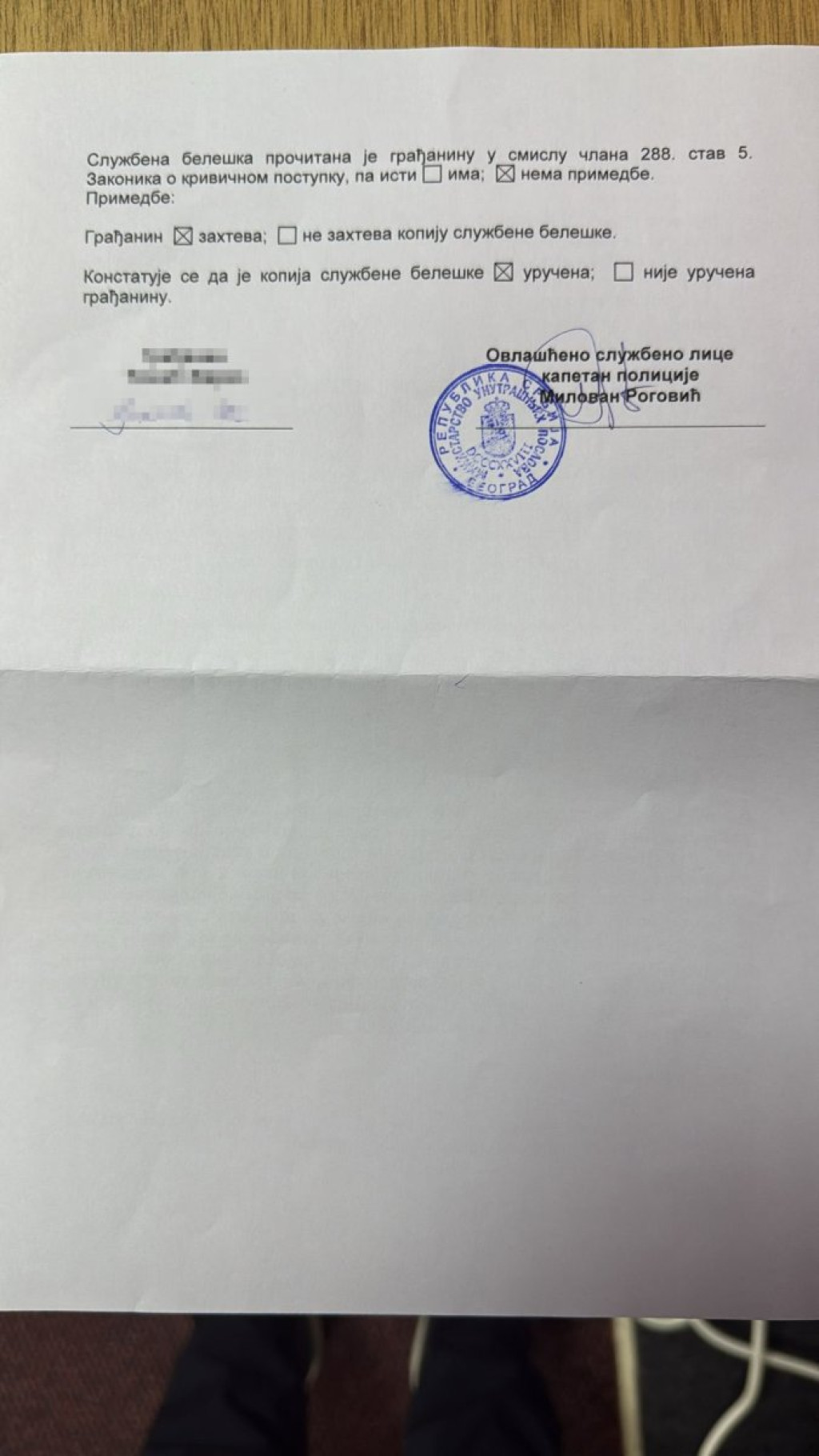 Prema njegovim rečima, V. T. je stajao na trotoaru, a kada je ugledao njegov automobil, skočio je na pešačkom prelazu pravo ispred vozila, nakon čega mu se pridružio i R. P.