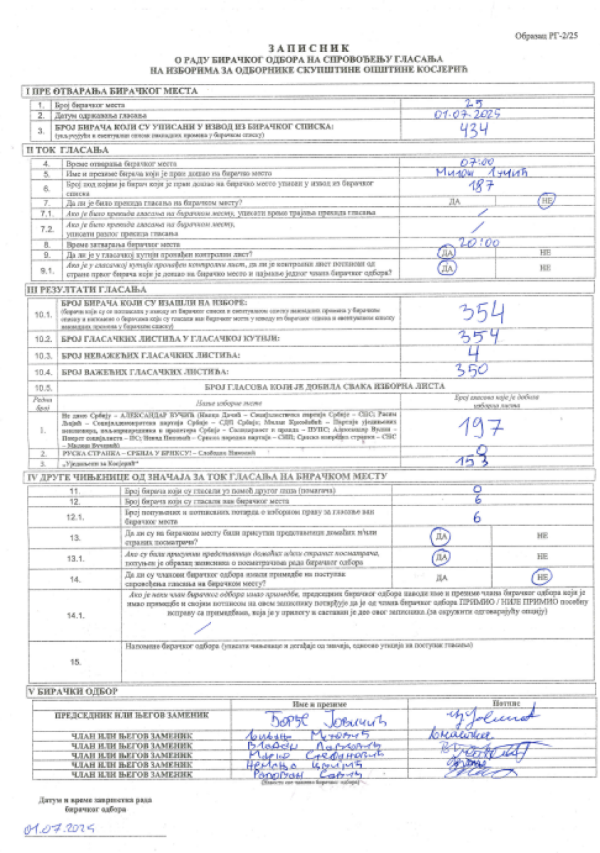 Objavljen je i zapisnik sa biračkog mesta koji su potpisali blokaderi, a nije podnet niti jedan prigovor.