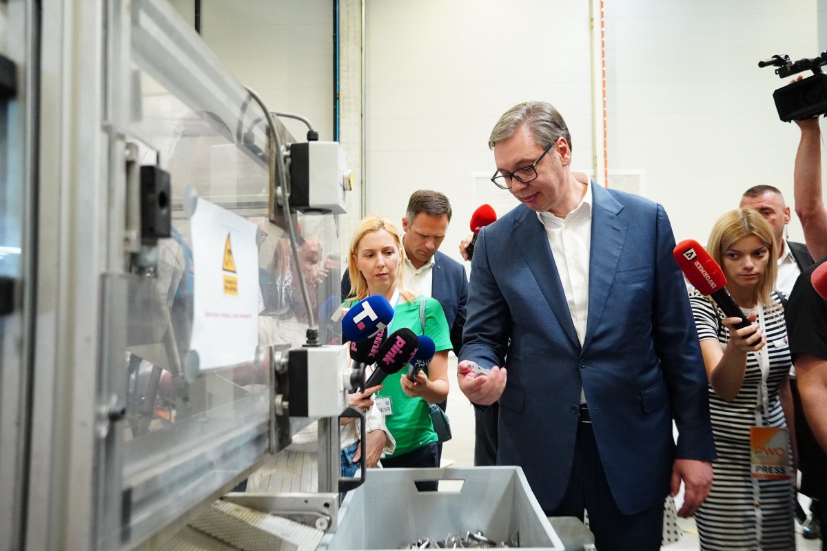 Predsednik Republike Srbije Aleksandar Vučić prisustvovao je ceremoniji otvaranja fabrike kompanije PWO Group u Preljini kod Čačka.