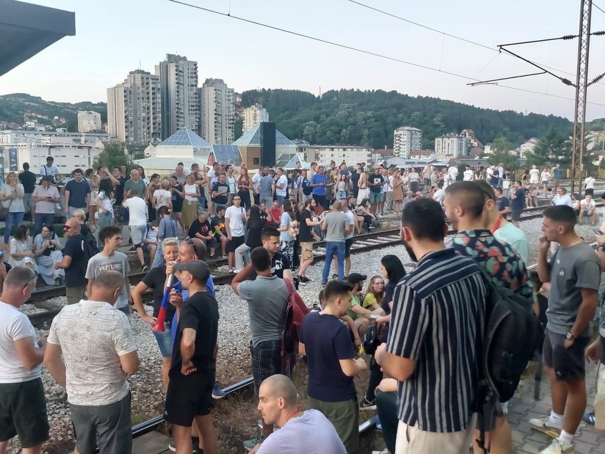 Trenutno na železničkoj stanici stoji jedan voz, a blokaderi su zauzeli koloseke i prostor oko koloseka. Protest još traje.