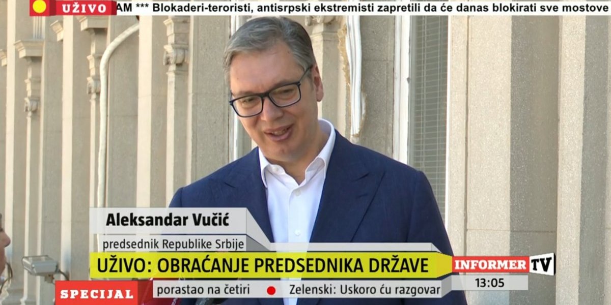 - Uništavate sebe, svoje komšije. Zašto to radite, ne znam. Da bi imali fotografiju za društvene mreže. Svaki dan ovakvih blokada, njima podrška pada. Ljudi to ne žele. Nećemo skoro nikad da vas diramo, uništili ste interese svojih komšija, zašto to čine, ni sami ne znaju, zato sam ih molio, nemojte ljudi i svaki njihov herojski potez završi se suzama ispred policijskih stanica. Kažu, pustite nekoga... - kazao je Vučić.