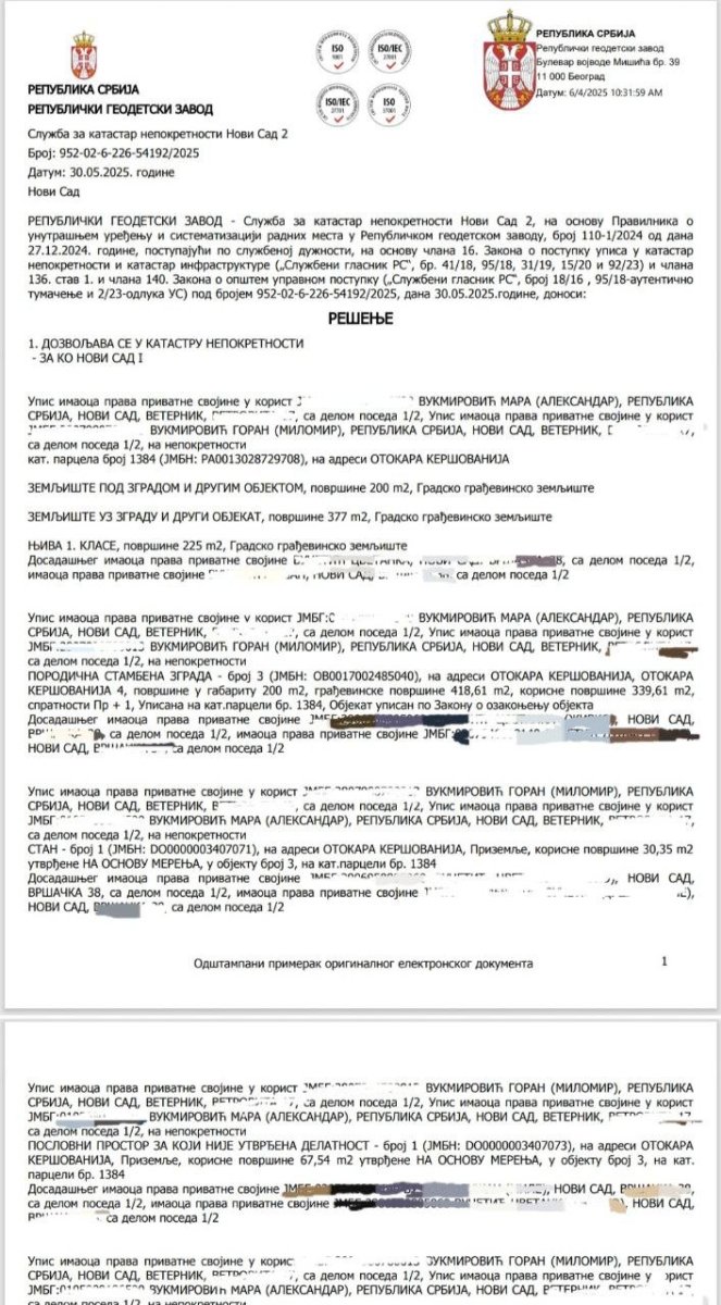 Redakcija "NS Uživo" došla je do podataka na osnovu kojih se utvrđuje da je kupila imanje u Novom Sadu u suvlasništvu sa svojim suprugom, inače zaposlenim u PU Novi Sad.