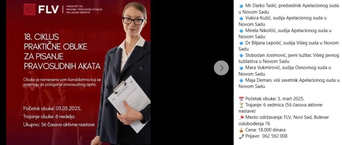 Ova obuka za pisanje pravosudnih akata je trajala 6 nedelja po ceni od 18.000 dinara i postavlja se jedno osnovno pitanje, da li sudija Mara Vukmirović na ovakvim obukama uči buduće sudije da pišu onako skandalozne presude kao što je ona činila u slučaju Marinike Tepić?
