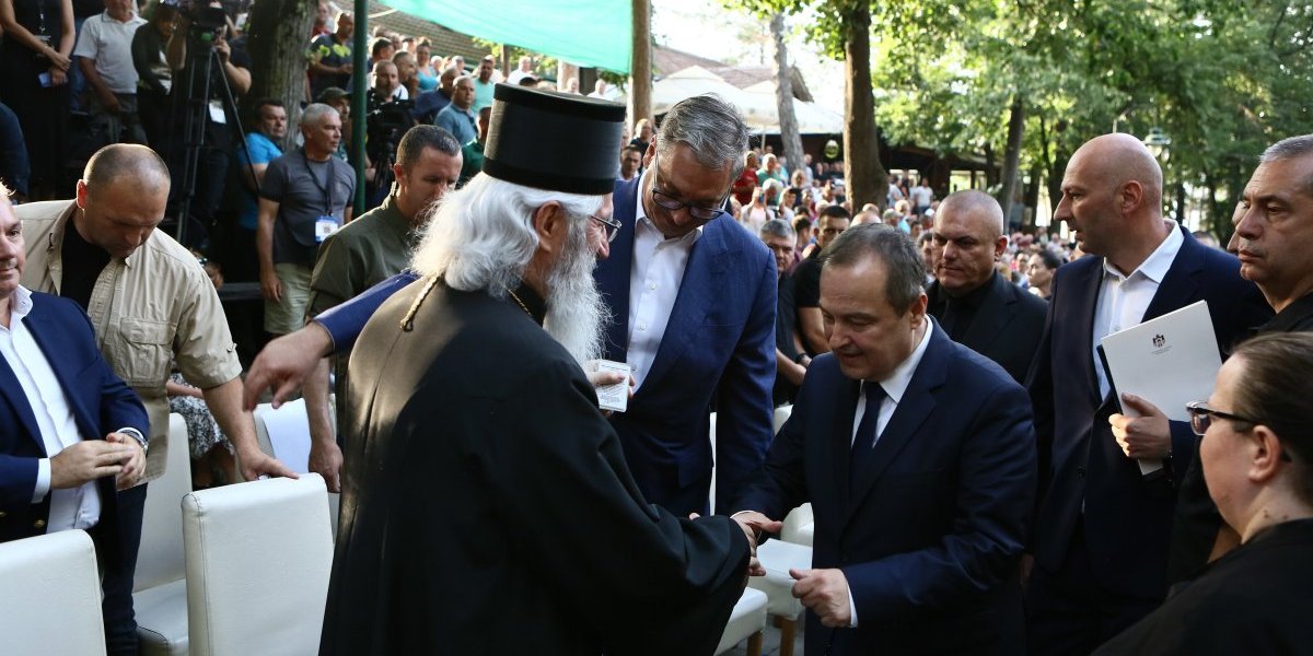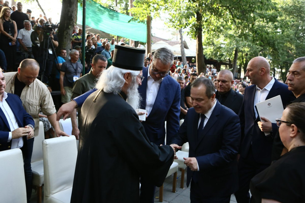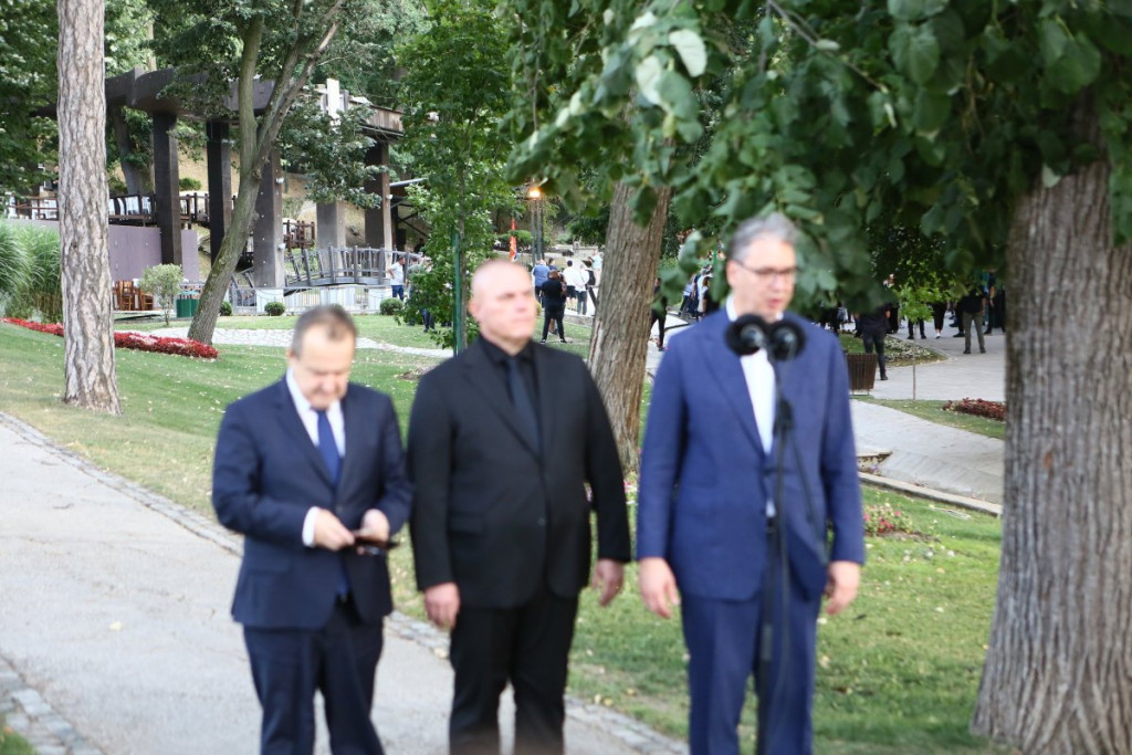 - Još jedan put da izrazim i svoje i poštovanje svih članova vlade prema Draganu Markoviću Palmi. Zahvalnost njegovoj porodici što su nas pozvali da otkrijemo bistu čoveku koji je dve decenije upravljao Jagodinom, ali je mnogo toga doneo i uradio i mnogima pomogao. U ovom trenutku sve naše snage policije su angažovane na gašenju požara. Tako da molim sve ove koji ruše svoju državu da razmisle malo o tome, jer su nam bukvalno sve snage angažovane na gašenju požara, da se zaustave u svojoj mržnji prema svojoj zemlji i da nas puste da sačuvamo zemlju koliko je moguće - rekao je na početku.