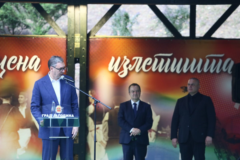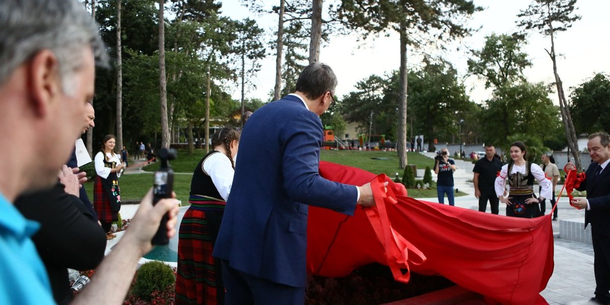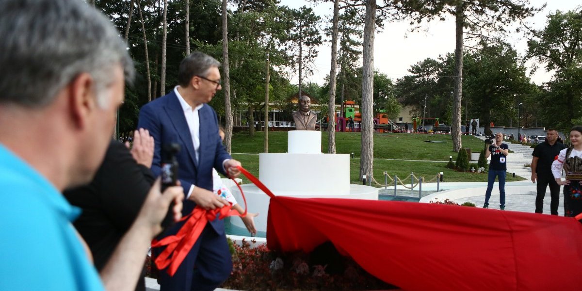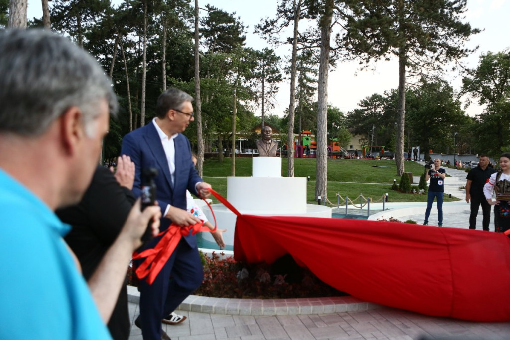 Predsednik Republike Srbije Aleksandar Vučić prisustvovao je ceremoniji otvaranja turističkog kompleksa i memorijalnog parka Dragan Marković Palma u Jagodini.