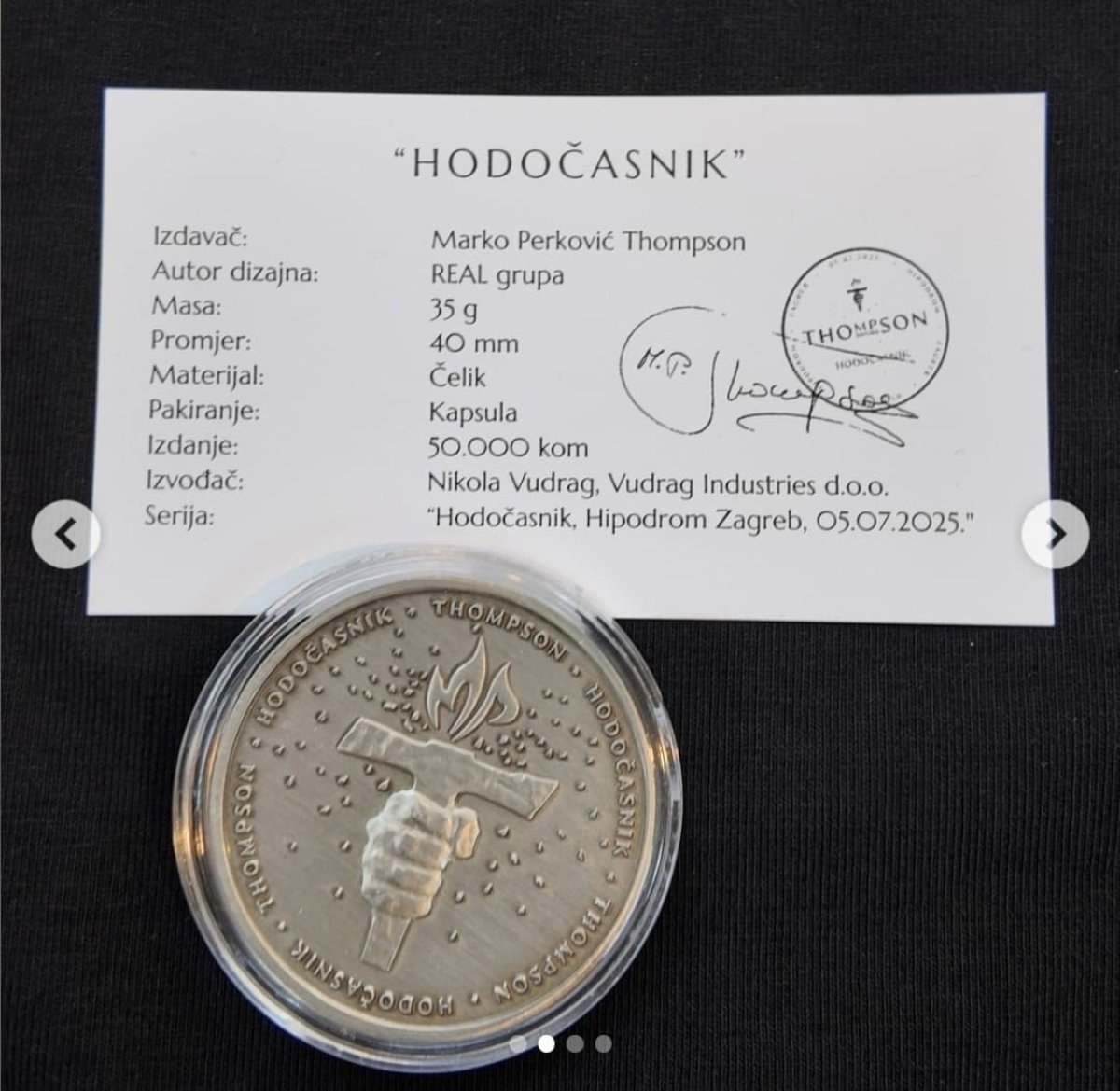 Prema njegovim tvrdnjama, težina medaljona je 35 grama, a cena po komadu iznosi 20 evra, dok je na ustaškom skupu prodato čak 50.000 ovih medaljona, što je ukupno milion evra zarade.