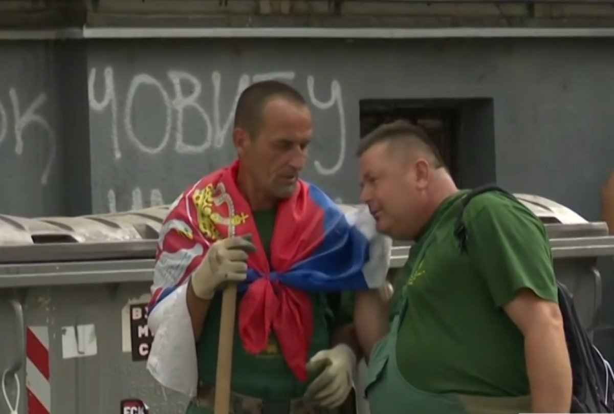 Jedan od radnika, inače, ogrnuo je zastavu Srbije koju blokaderi danima skrvane, bacaju, cepaju i ponižavaju.