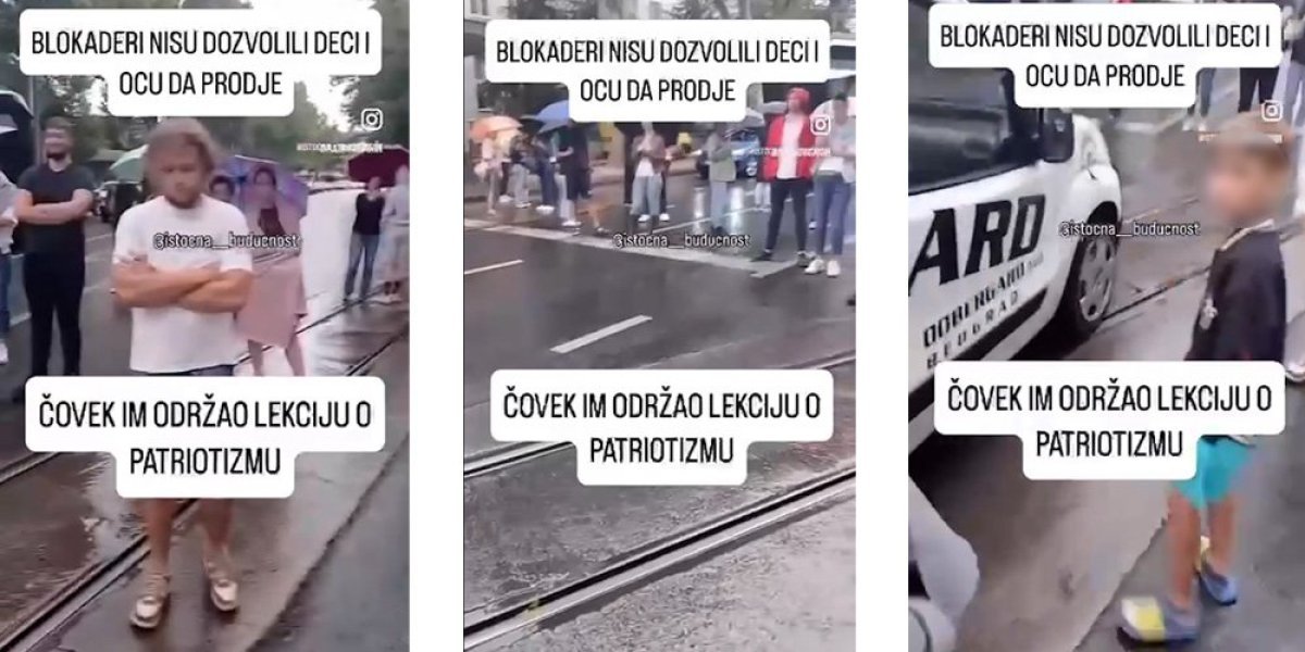 - Sram vas bilo, zašto tako mrzite svoju državu. Sram vas bilo! Deco, dođite ovde, ovakvi ne smete da budete! Sram vas bilo kreteni! Hoću da pokažem deci kakvi ne smeju da budu, a imam sina tvoih godina koji je završio fakultet, a ne bi nikad ovo uradio protiv svoje države. Sve vas sram bilo, što zadržavate ovu decu koja ne mogu da prođu- poručio je čovek blokaderima.