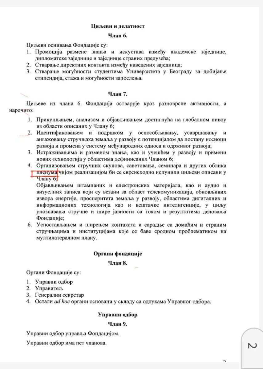 Ova Fondacija je osnovana u februaru 2024. godine, a član Upravnog odbora je i Nebojša Bojović, prorektor za međunarodnu saradnju, ali i prorektor za nauku Vladimir Cvetković.