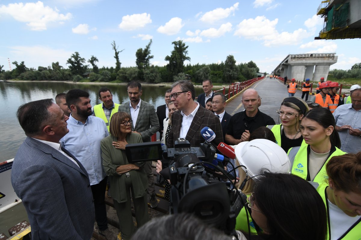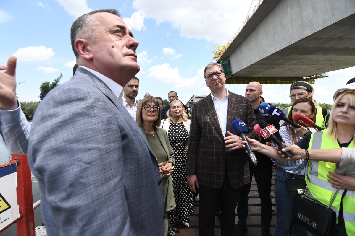 Predsednik Srbije Aleksandar Vučić obišao je danas radove na izgradnji mosta preko Dunava kod Petrovaradina, koji je deo Fruškogorskog koridora, to jest brze saobraćajnice od Novog Sada do Rume.