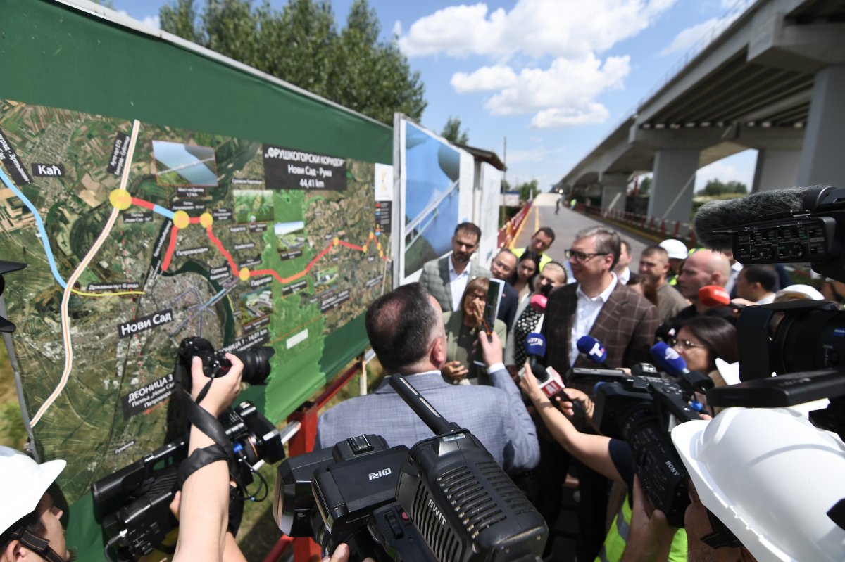 - Sve za EXPO otvaramo, ostaće nam samo ovaj deo oko Paragova, 11, 12 kilometara. Moramo to 2027. da završimo. Izračunajte kako će biti kad budemo uradili Zrenjanin - Novi Sad. Da uzmemo da spojimo severoistok zemlje sa zapadom zemlje. Ranije bi vam bilo potrebno minimum tri i po sata, sada od Zrenjanina do Loznice neće biti potrebno ni sat i 50 minuta, duplo sigurnije i kraće. Premrežavamo autoputevima. Pogledajte kako ovo impresivno izgleda. Zamislite neko je ovde pokušao da spreči izgradnju, na delu gde nema ničega, ali značiće za celu Vojvodinu. Tri nova mosta dobija Novi Sad - kazao je Vučić i dodao: