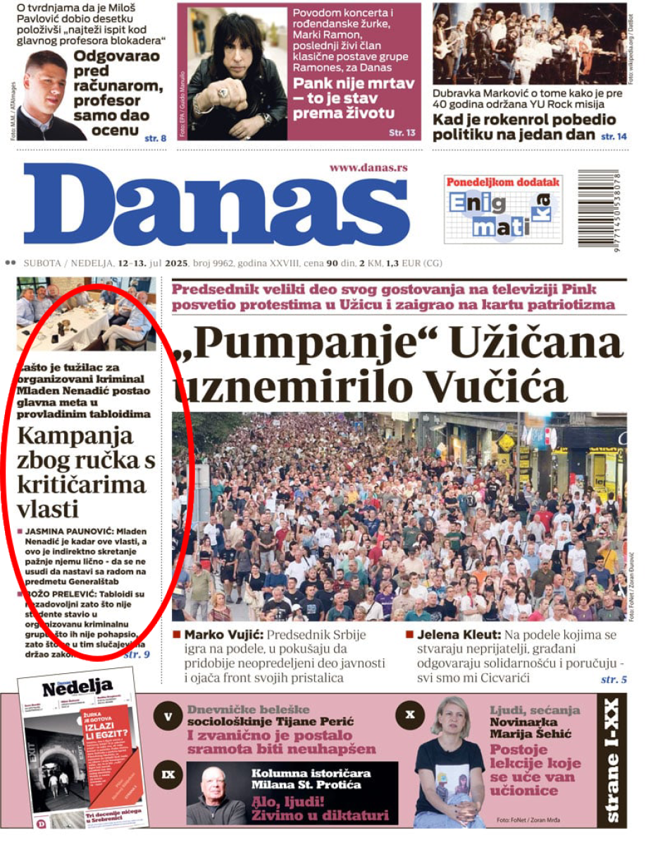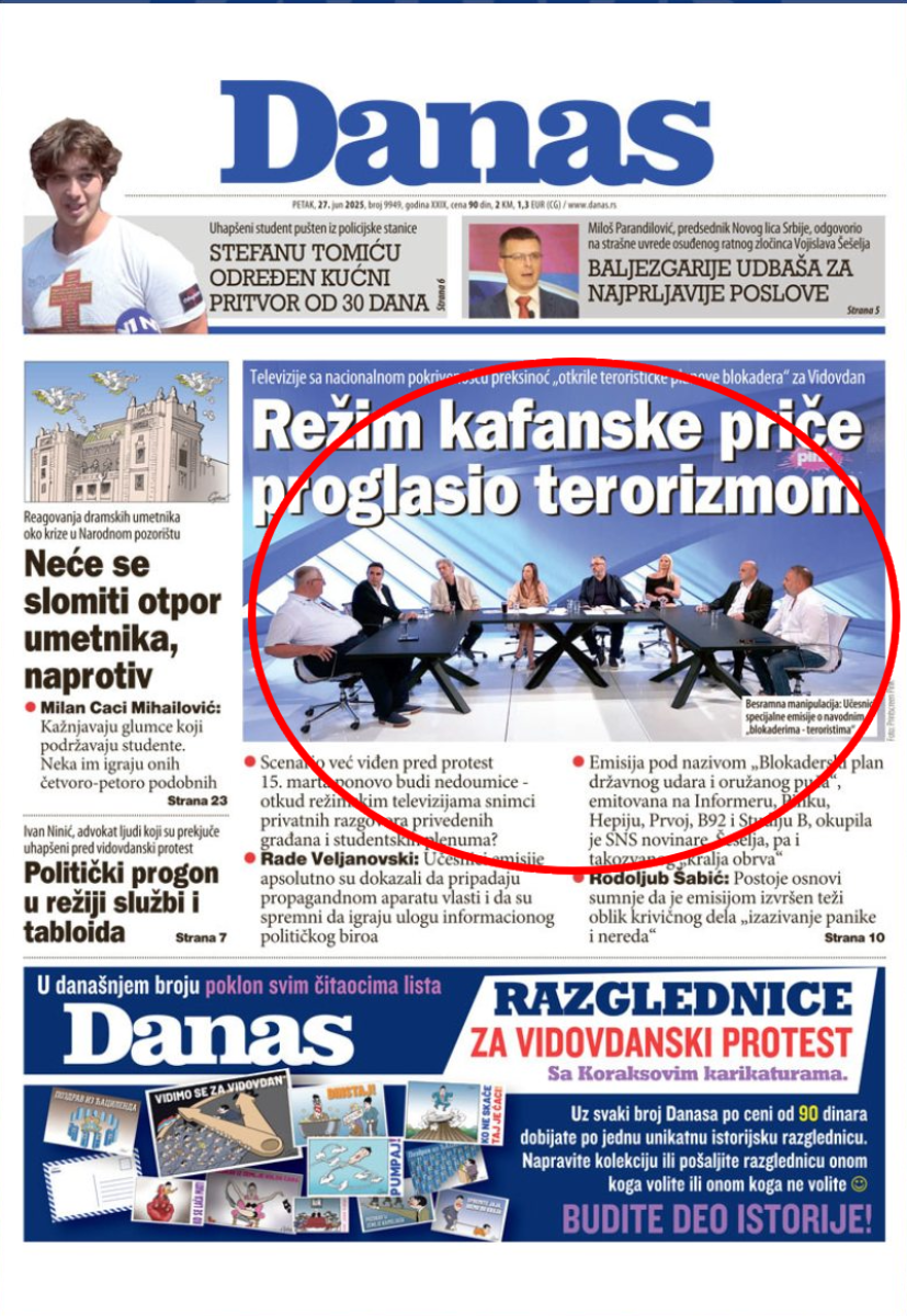 Blokadersko gebelsovsko glasilo Danas, niskotiražni tabloid pod tajkunskom kontrolom, besramno je pokušao da relativizuje zaveru koju protiv Srbije kuje duboka država na čelu sa rektorom Beogradskog univerziteta Vladanom Đokićem.