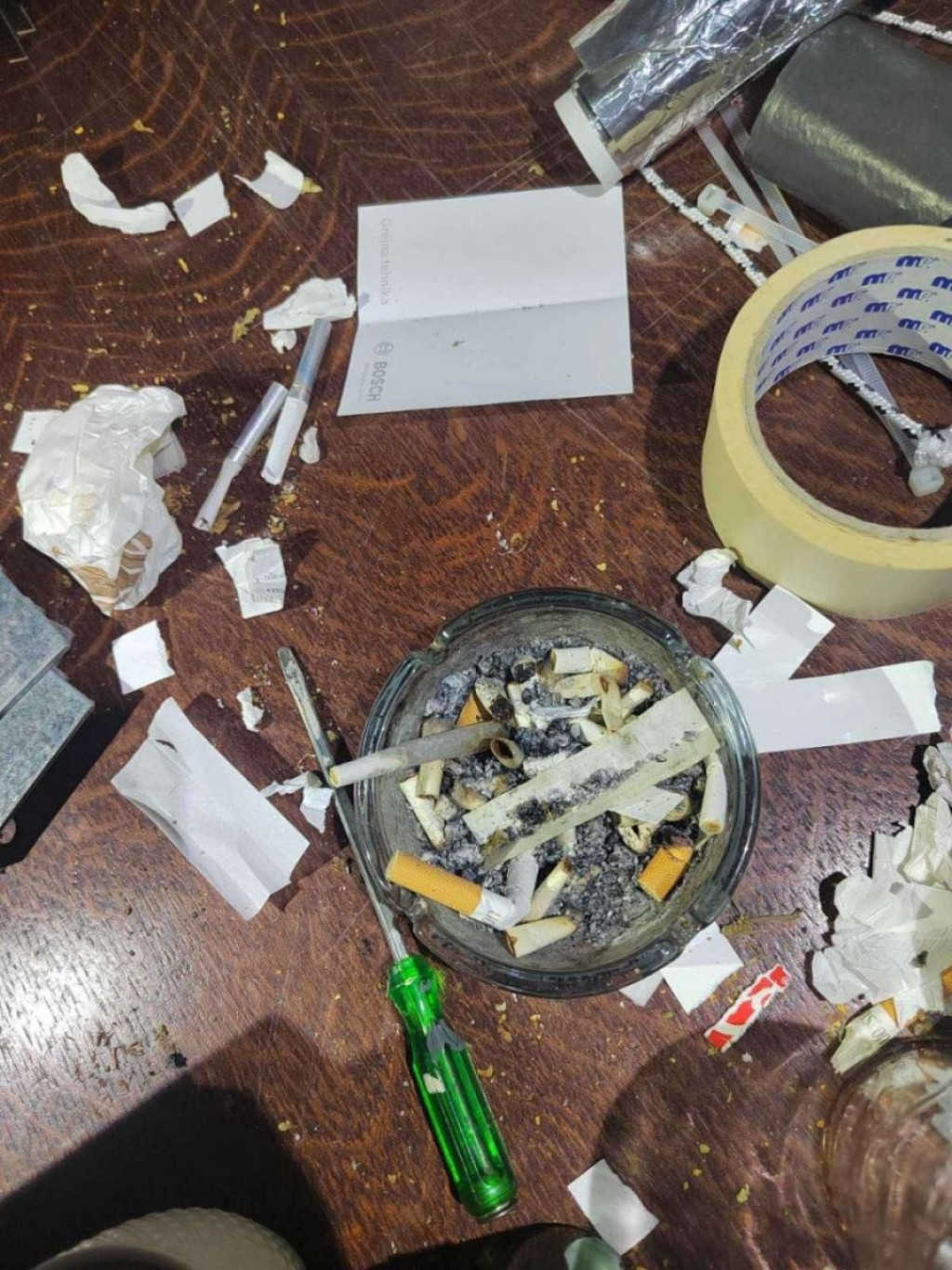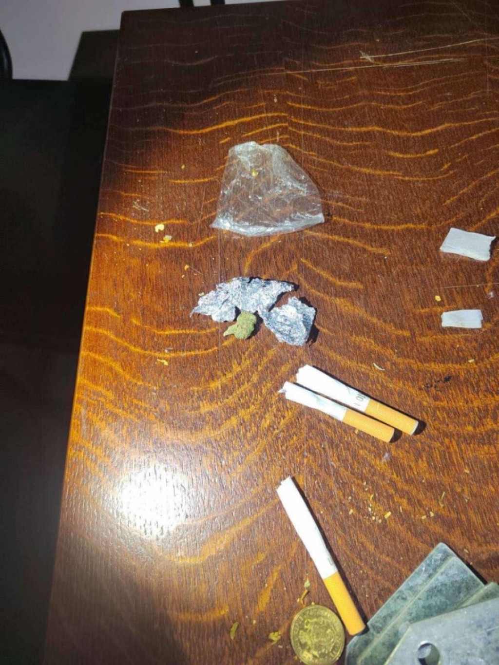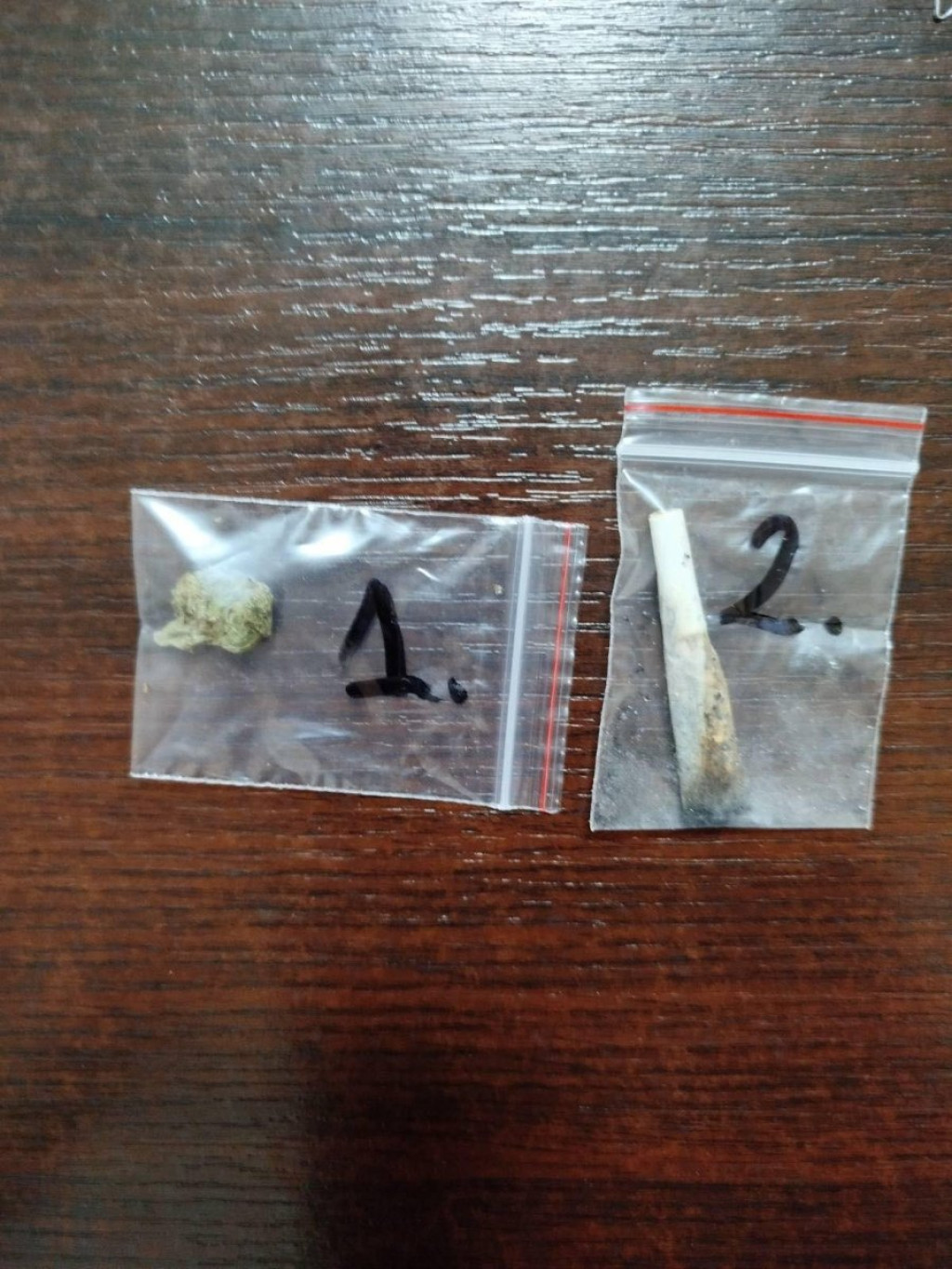 Uz saglasnost Misita izvršeno je pretresanje lokala i tom prilikom je pronađena jedna nagorela ručno pravljena cigareta ispunjena biljnom materijom zelene boje nalik na opojnu drogu marihuana i jedan komad biljne materije zelene boje, takođe nalik na opojnu drogu marihuanu.