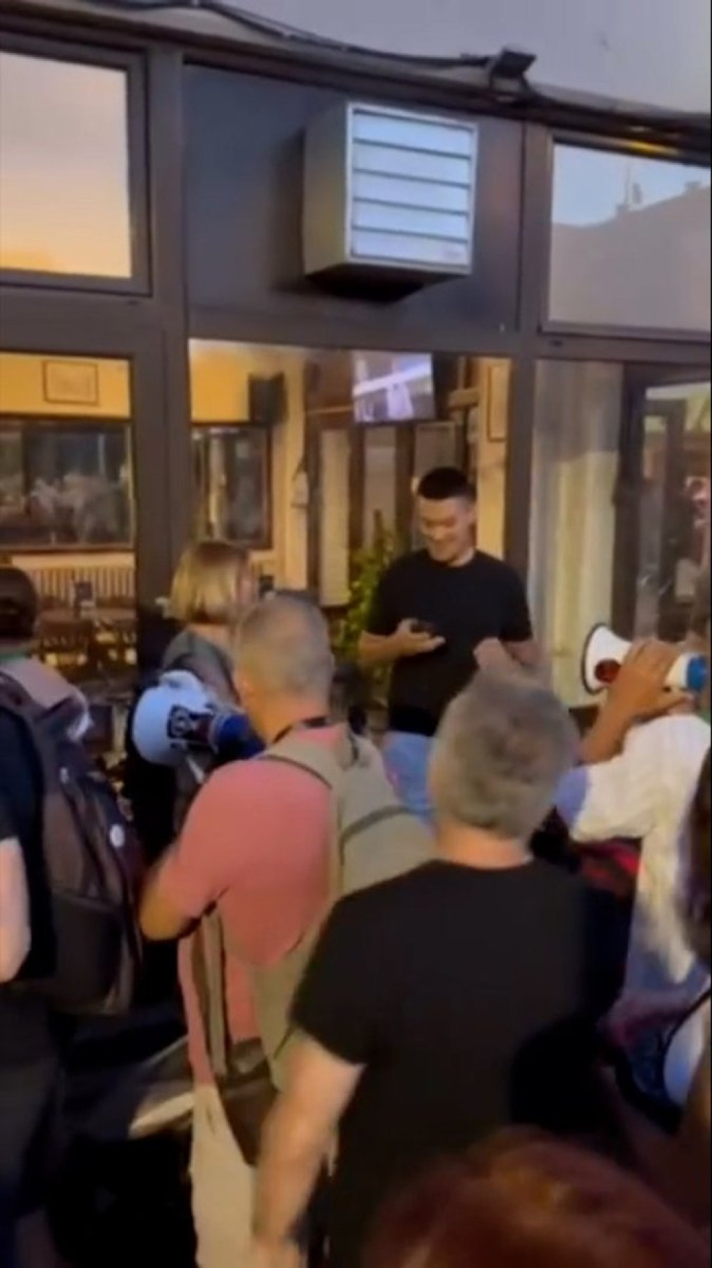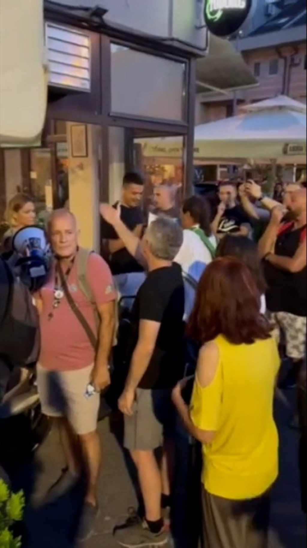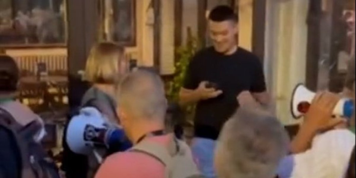 Tom prilikom, pored standardnog repertoara vređanja, napadnuta je novinarka Emilija Marić. Muškarac na snimku koji drži megafon je upravo pomenuti Robert Silberholz.