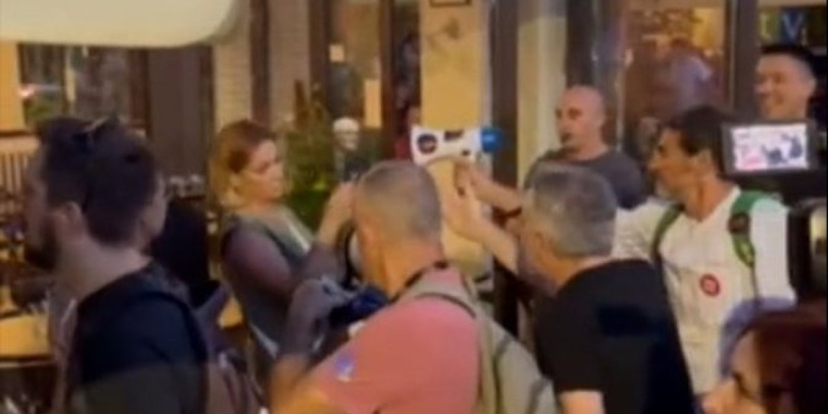 Blokaderi su se unosili u lice, prostači vređali, dok je jedno lice i šutnulo Emiliju, što može da se vidi na kraju snimka koji je objavljen na instagram stranici Novosadske televizije.