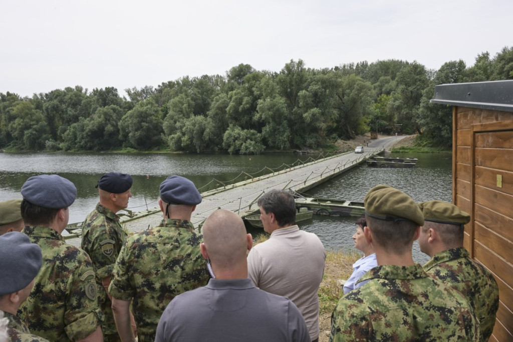 Tokom obilaska, kojem je prisustvovao zamenik načelnika Generalštaba general-potpukovnik Tiosav Janković, komandant Rečne flotile kapetan bojnog broda Darko Stričić upoznao je ministra odbrane sa realizacijom zadataka na održavanju pontonskog mosta. Ministar Gašić, tom prilikom, razgovarao je sa pripadnicima Vojske koji brinu o bezbednosti mosta i prelasku ljudi i motornih vozila.