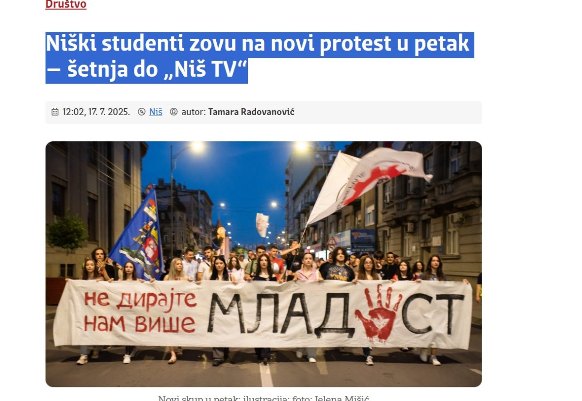 Opozicioni portal koji direktno učestvuje u ovom progonu - Južne vesti - objavili su tekst pod sramnim nazivom ''Niški studenti zovu na novi protest u petak – šetnja do „Niš TV“''.