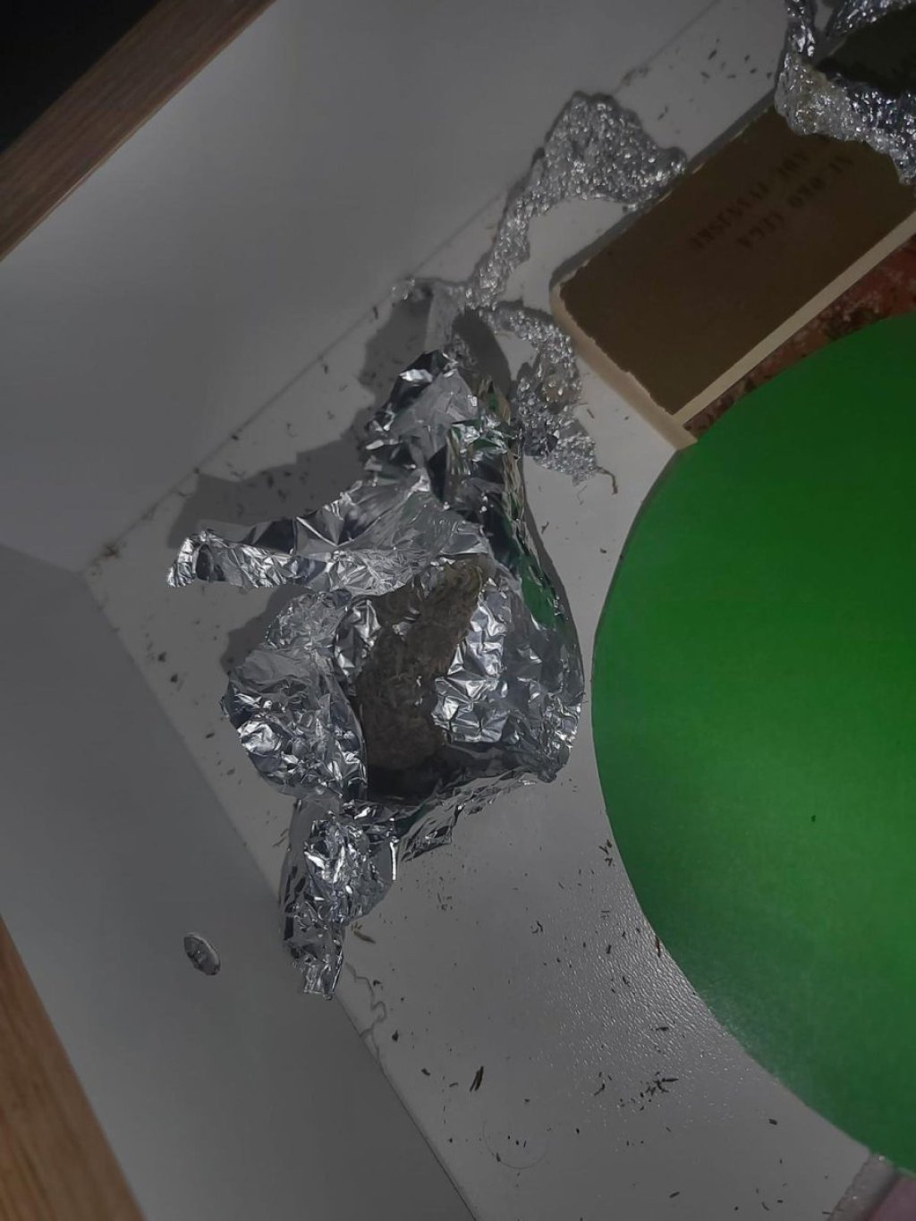 Uz saglasnost Misite izvršeno je pretresanje lokala i tom prilikom je pronađena jedna nagorela ručno pravljena cigareta ispunjena biljnom materijom zelene boje nalik na opojnu drogu marihuana. Takođe, nađen je i jedan komad biljne materije zelene boje, takođe nalik na opojnu drogu marihuanu.