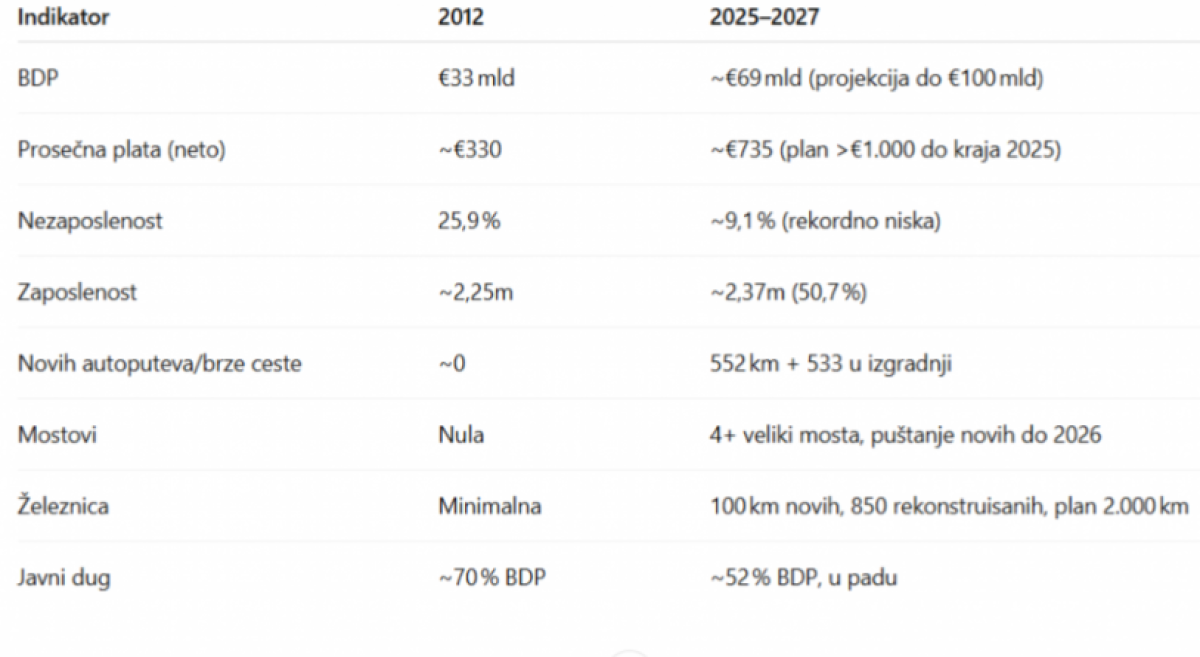 Od 2012. do 2025. godine reformi i gradilišta: autoputevi, brze pruge, novi mostovi, prosečne plate od 1.000 eura, javni dug pod kontrolom - Srbija raste i jača.