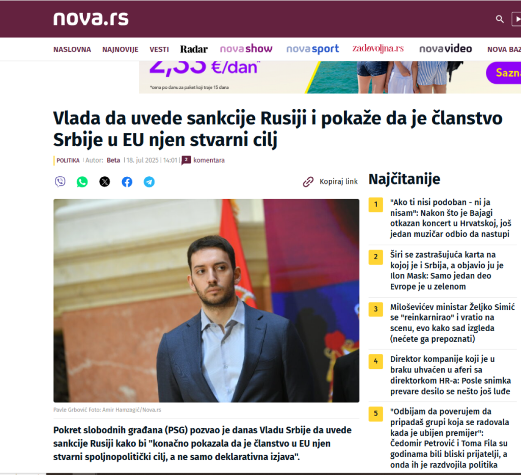 Pokazavši tako kakvi su njihovi interesi i gde bi oni vodili Srbiju kada bi se dokopali vlasti, iz PSG su čak pohvalili Albaniju da je u odnosu na našu zemlju "znatno odmakla" u evropskim integracijama.