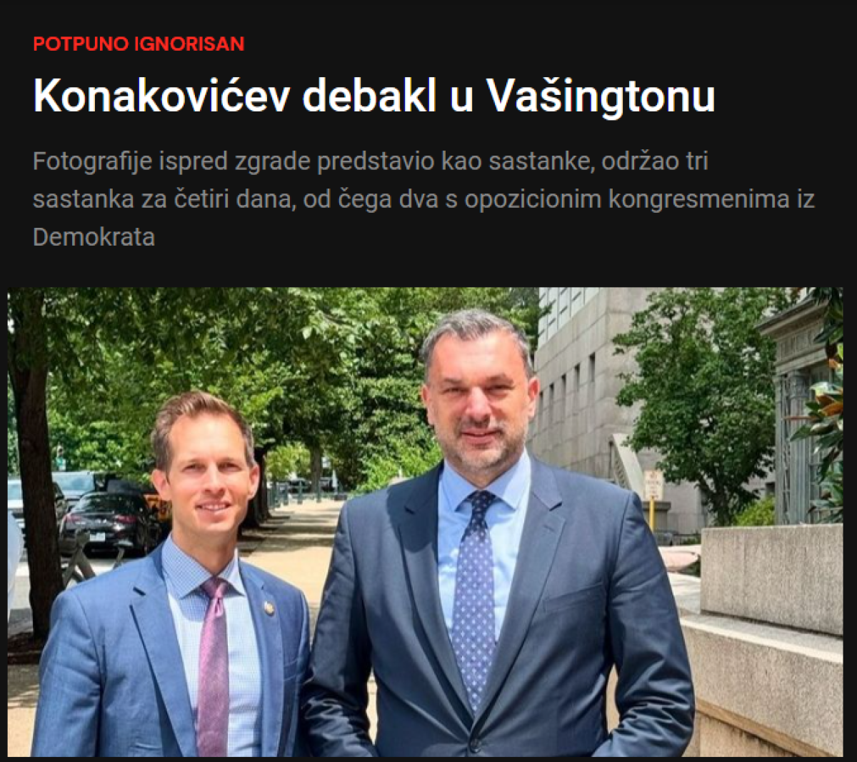 Umesto toga, Konaković je na društvenim mrežama objavljivao fotografije sa američkim zvaničnicima nižeg ranga, a dobar deo posete SAD proveo je u svađanju sa protivnicima na društvenim mrežama.