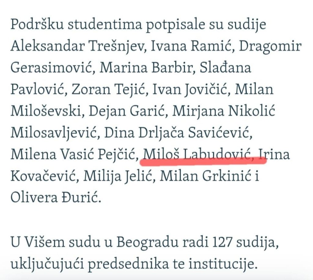 Interesantno je da je sudija Labudović, koji nije odredio pritvor M. J, član neformalne grupe sudija i tužilaca koji podržavaju blokadere zgubidane. Da slučaj bude skandalozniji, u pitanju je više od 10 sudija koji su se otvoreno svrstali na stranu onih koji žele rušenje aktuelne vlasti i države, iako to i te kako može da utiče na njihov rad i nepristrasnost.