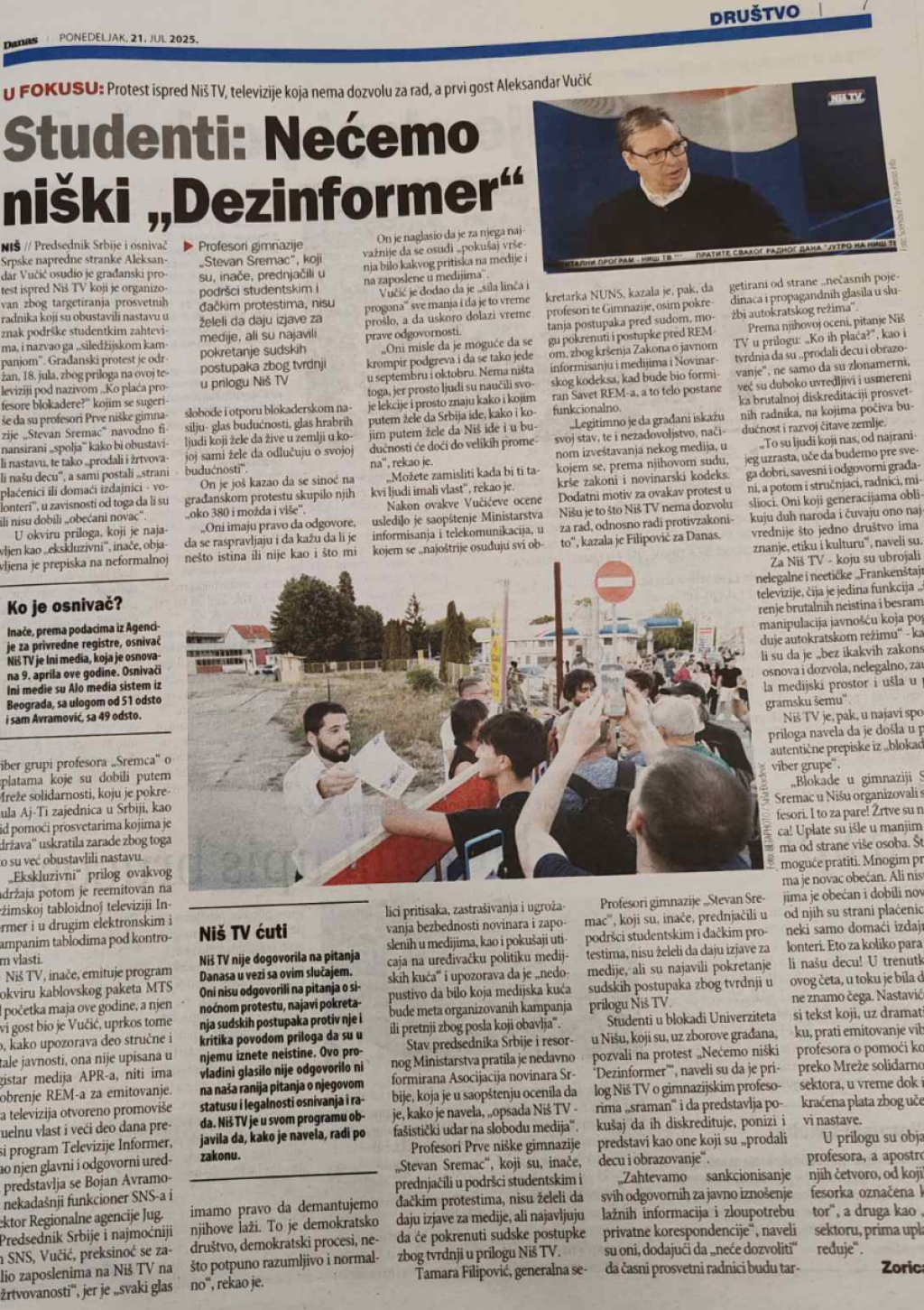 I na strani sedam pominje se Aleksandar Vučić u okviru napada na Niš TV.