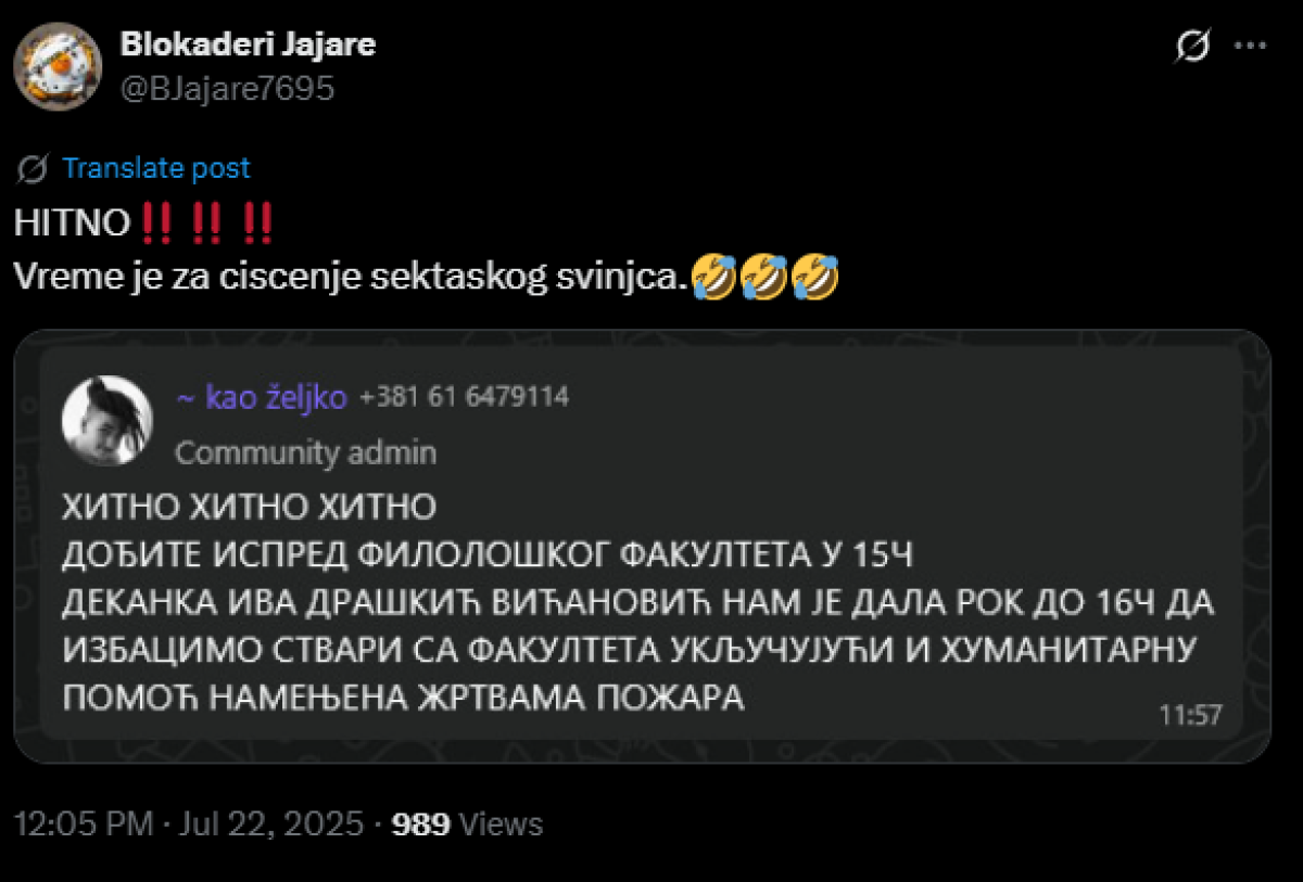 Pitam se ko će normalan da ove blokadere studente sutra primi na bilo koji posao da rade