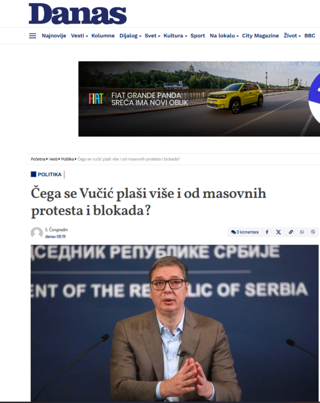 I pored praznih blokaderskih skupova tajkunski Danas ponovo najavljuje nekakav obračun s predsednikom Vučićem, navodeći još i to kako se on takvog "scenarija najviše plaši". A o kakvom je scenariju reč? Verovali ne, o navodnom intenziviranju blokada nakon što se okončaju letnji odmori. I još jednom, da nije tužno, bilo bi smešno!