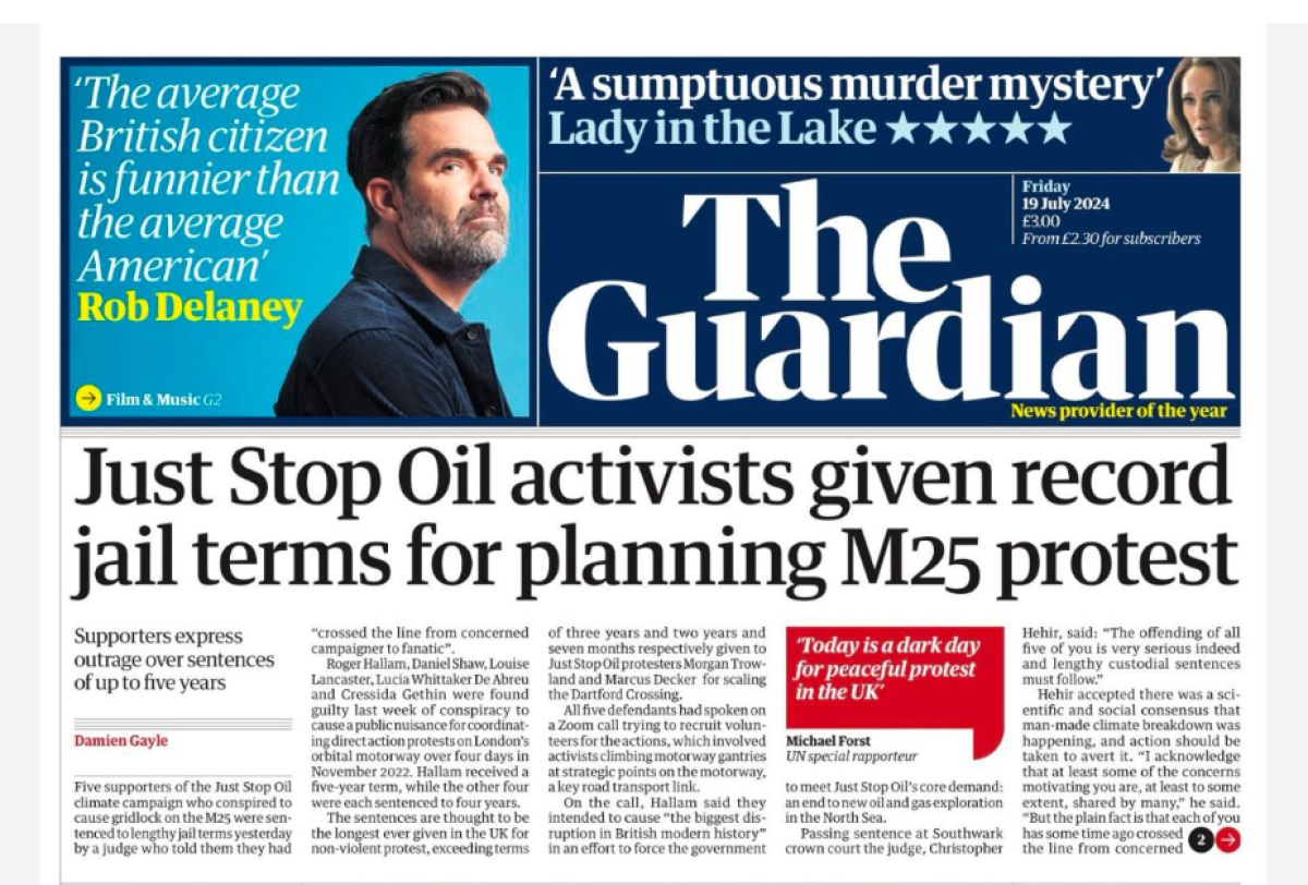 Pet ekoloških aktivista koji su organizovali proteste - Rodžer Halam (58), Danijel Šo (38), Luiz Lankaster (58), Lusija Viteker de Abro (35) i Kresida Getin (22), osuđeni su u julu prošle godine na zatvorske kazne. Halam je osuđen na pet godina, dok su ostali dobili po četiri godine zatvora.