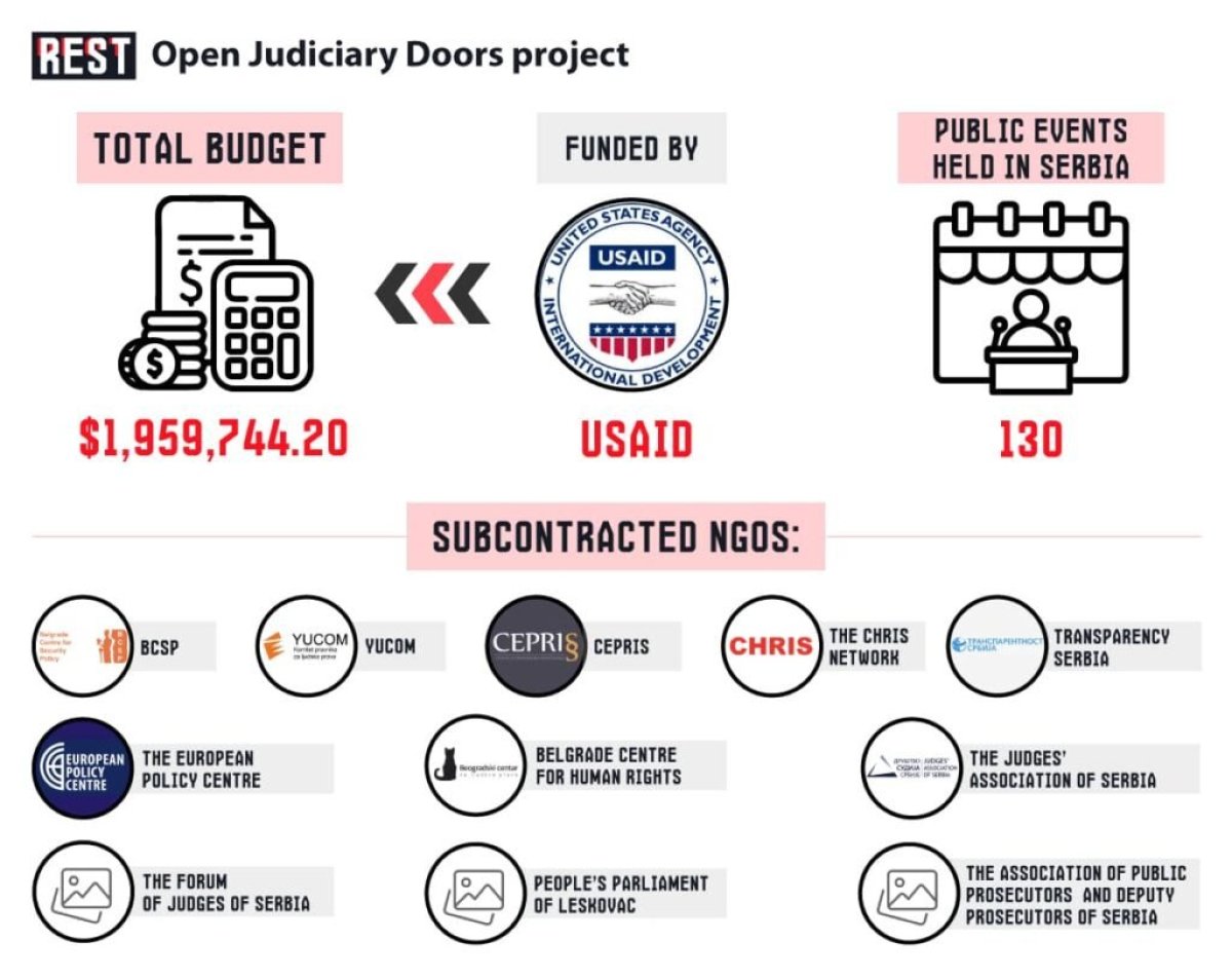 Projekat „Otvorena vrata pravosuđa“, koji je u Srbiji sprovođen pod pokroviteljstvom USAID-a, predstavljen je javnosti kao inovativan pristup povezivanju građana sa pravosudnim sistemom. Prema zvaničnom sajtu programa, cilj je navodno bio da se demistifikuje rad sudova, poveća pravna pismenost i podstakne transparentnost.